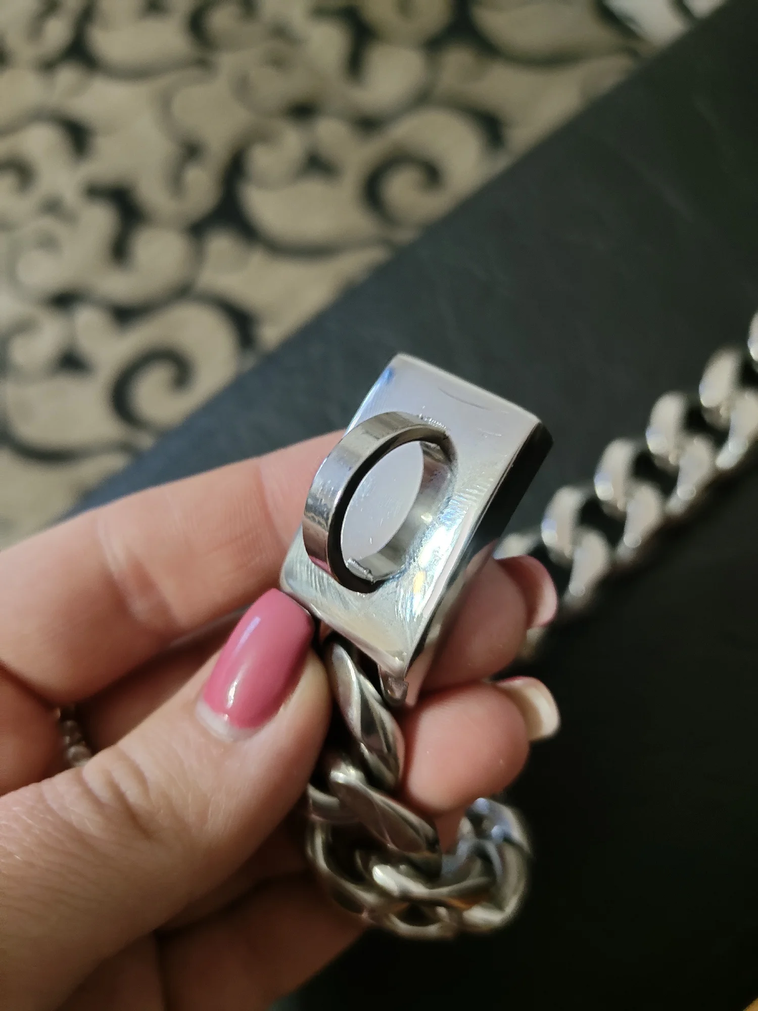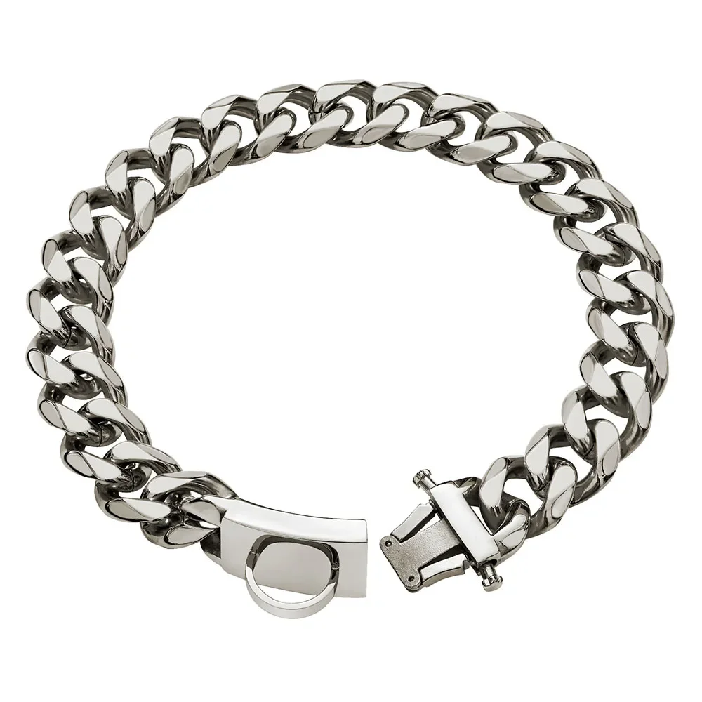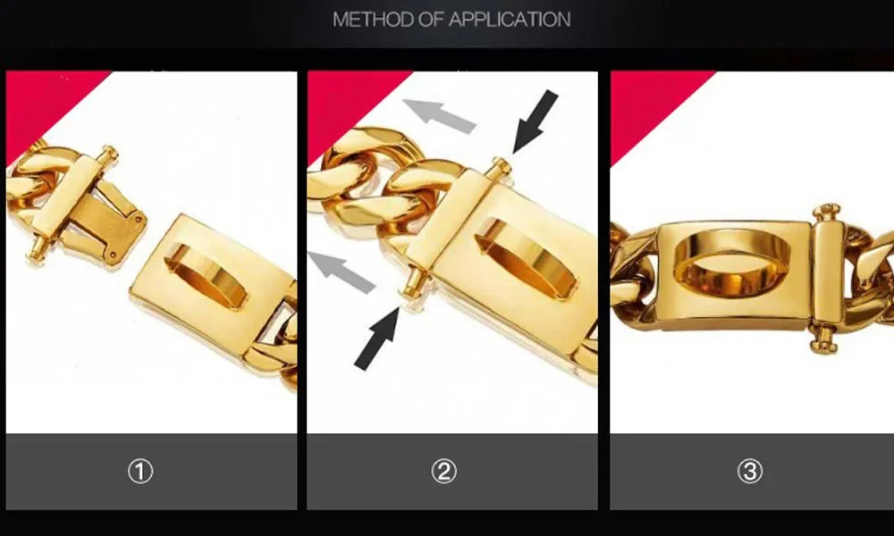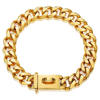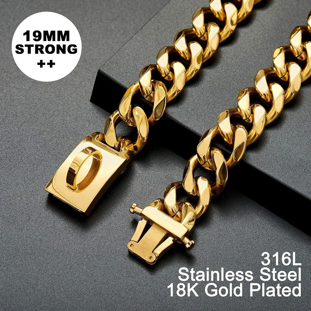 Beautiful gold and without mistakes. Firm and correct weight. Closes tightly. Fits perfectly around the neck of my Dog.