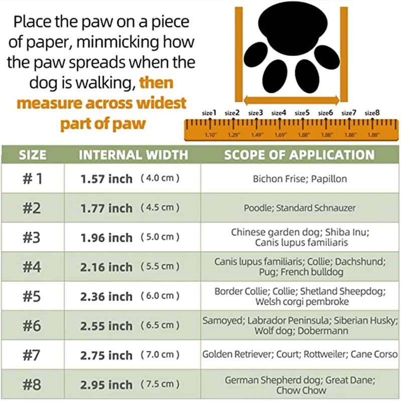 I have a 10-month-old purebred dog that weighs around 35-36 kg. I bought size 6 for him and they fit perfectly... at first he couldn't walk but quickly adapted to his new shoes... recommended, I will buy again...