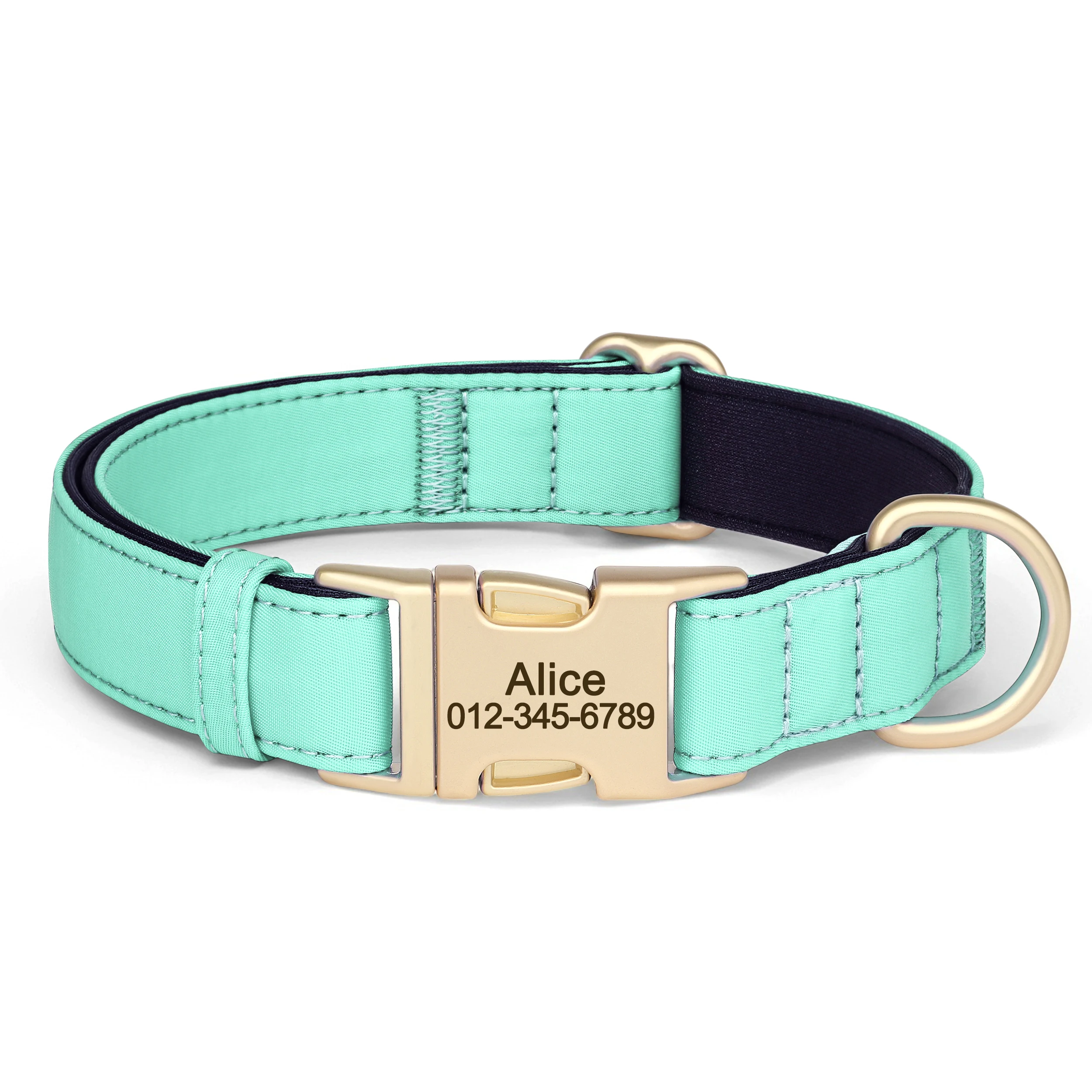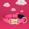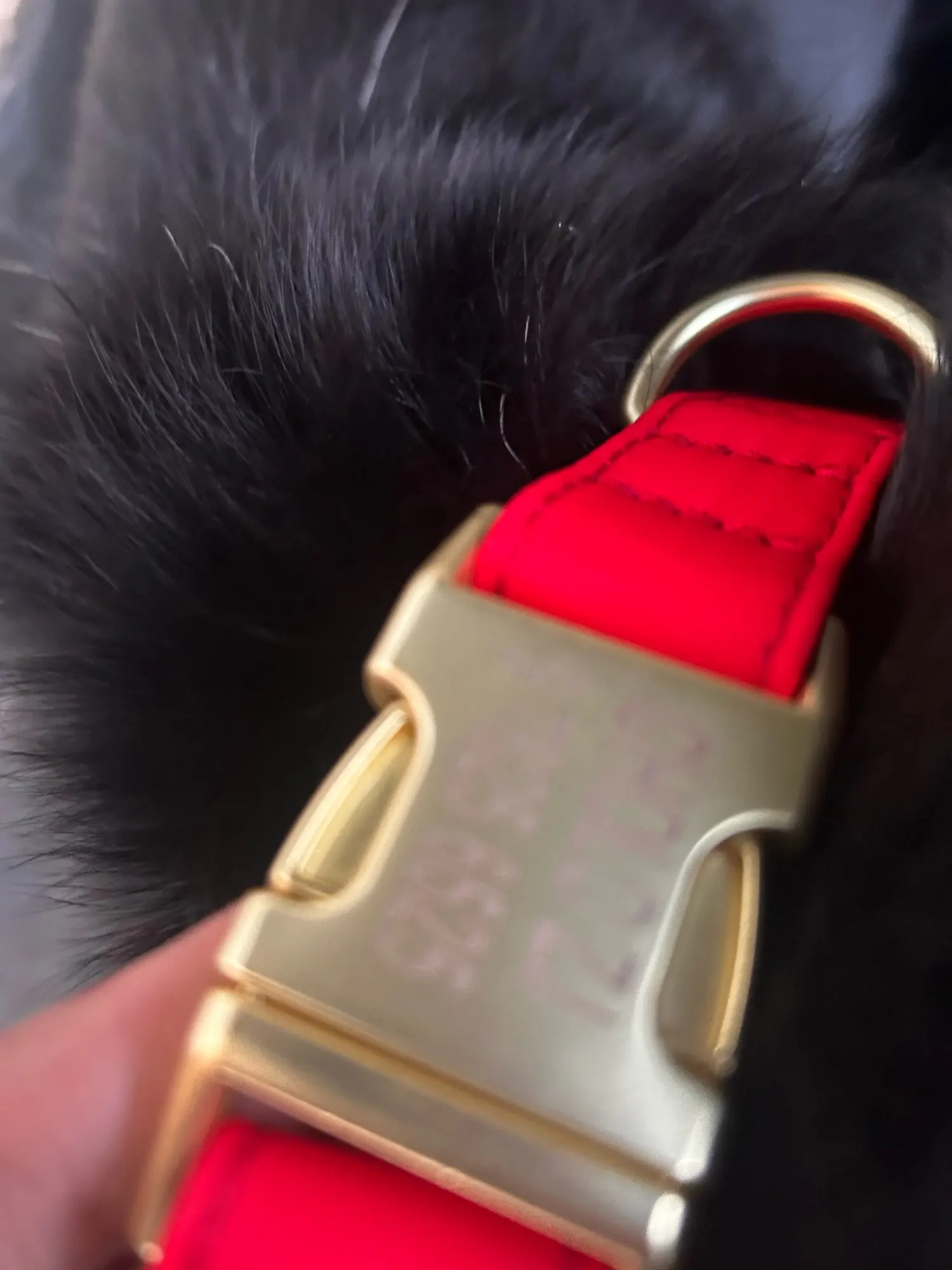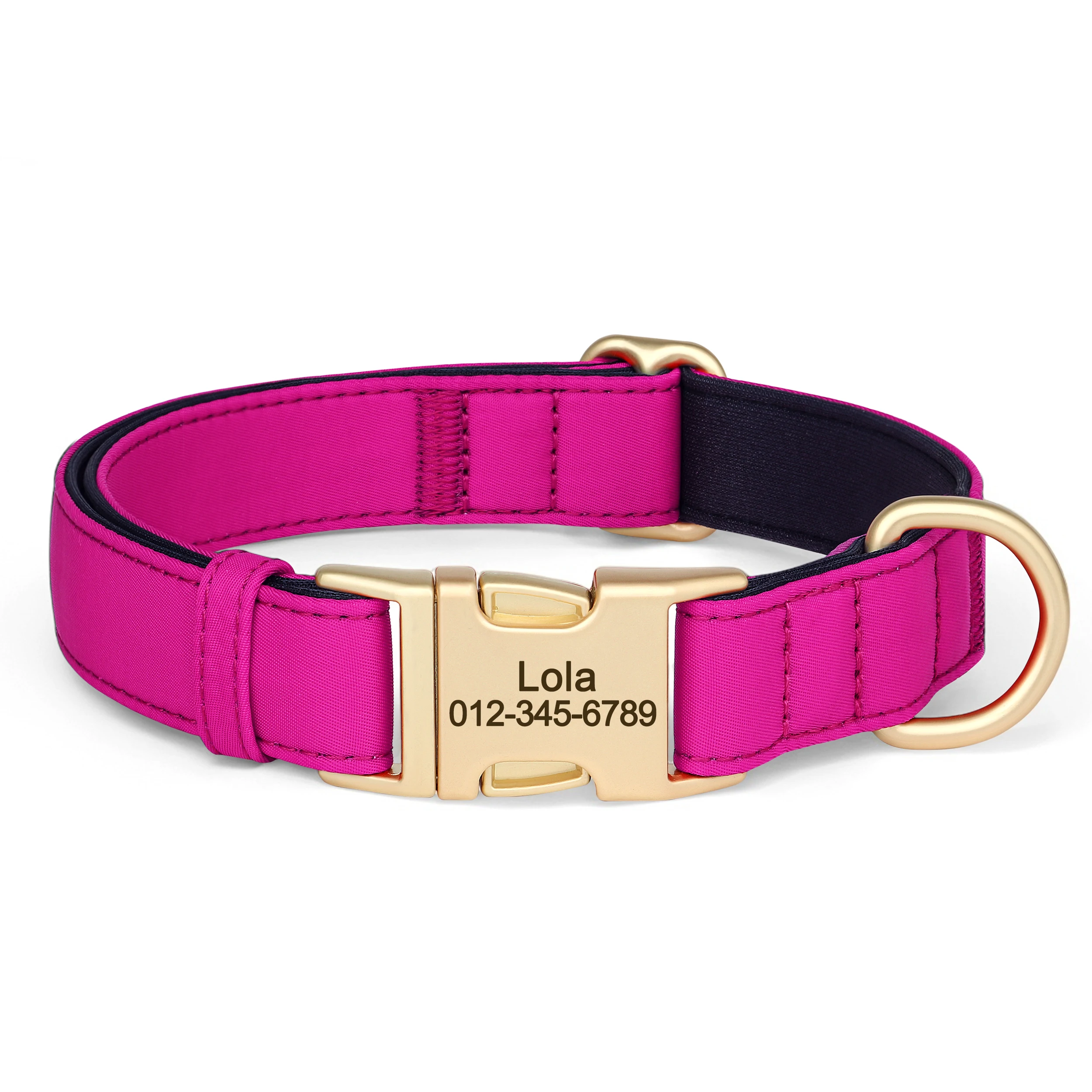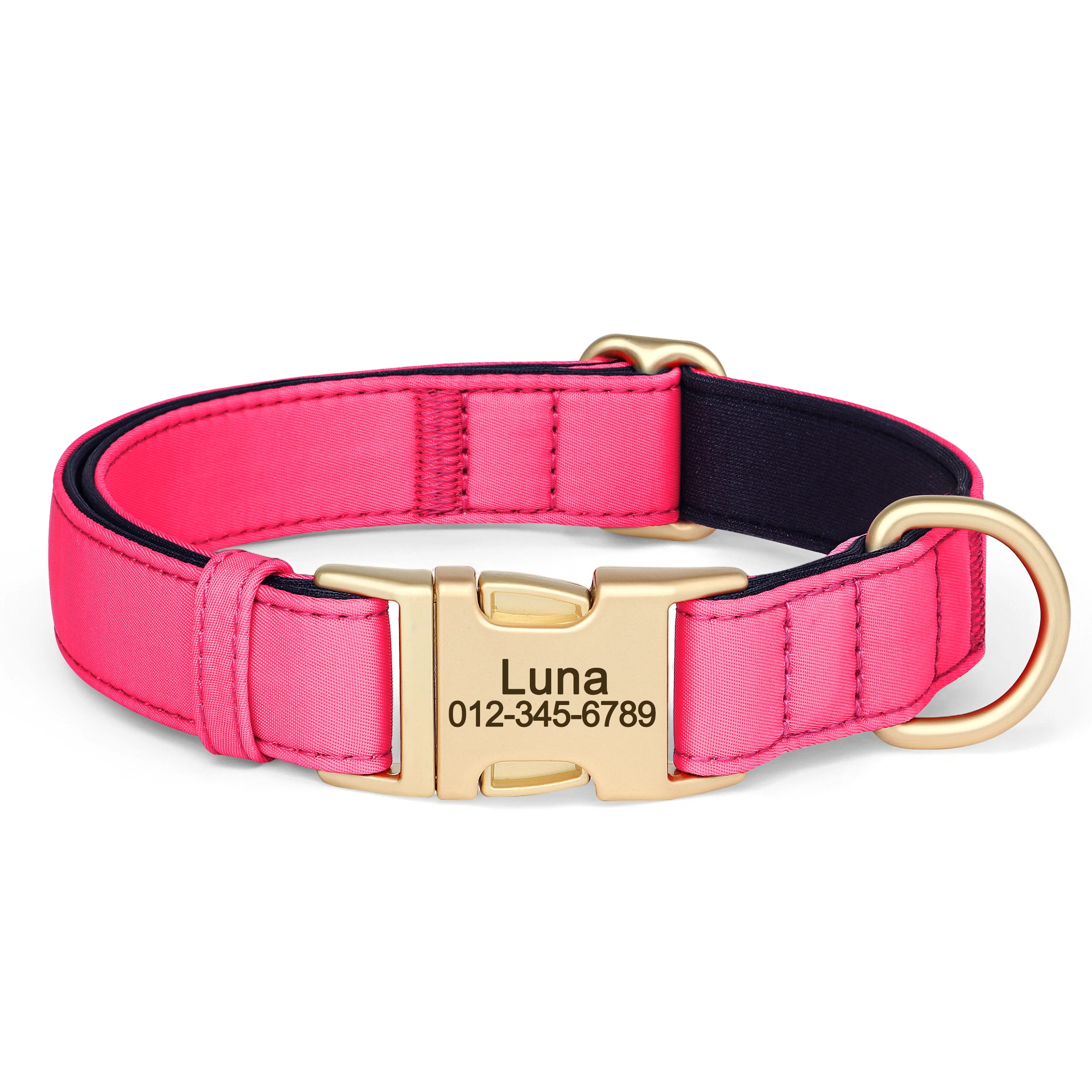 cool soft beautiful collar metal buckle logo dog name and mobile phone internal side of the collar probably not sure about waterproof the collar is getting big in