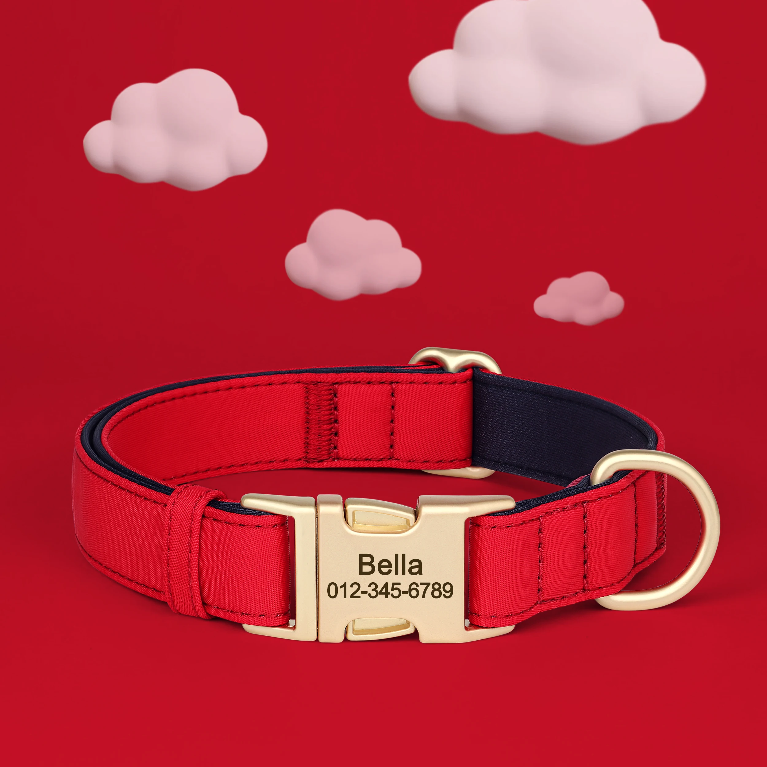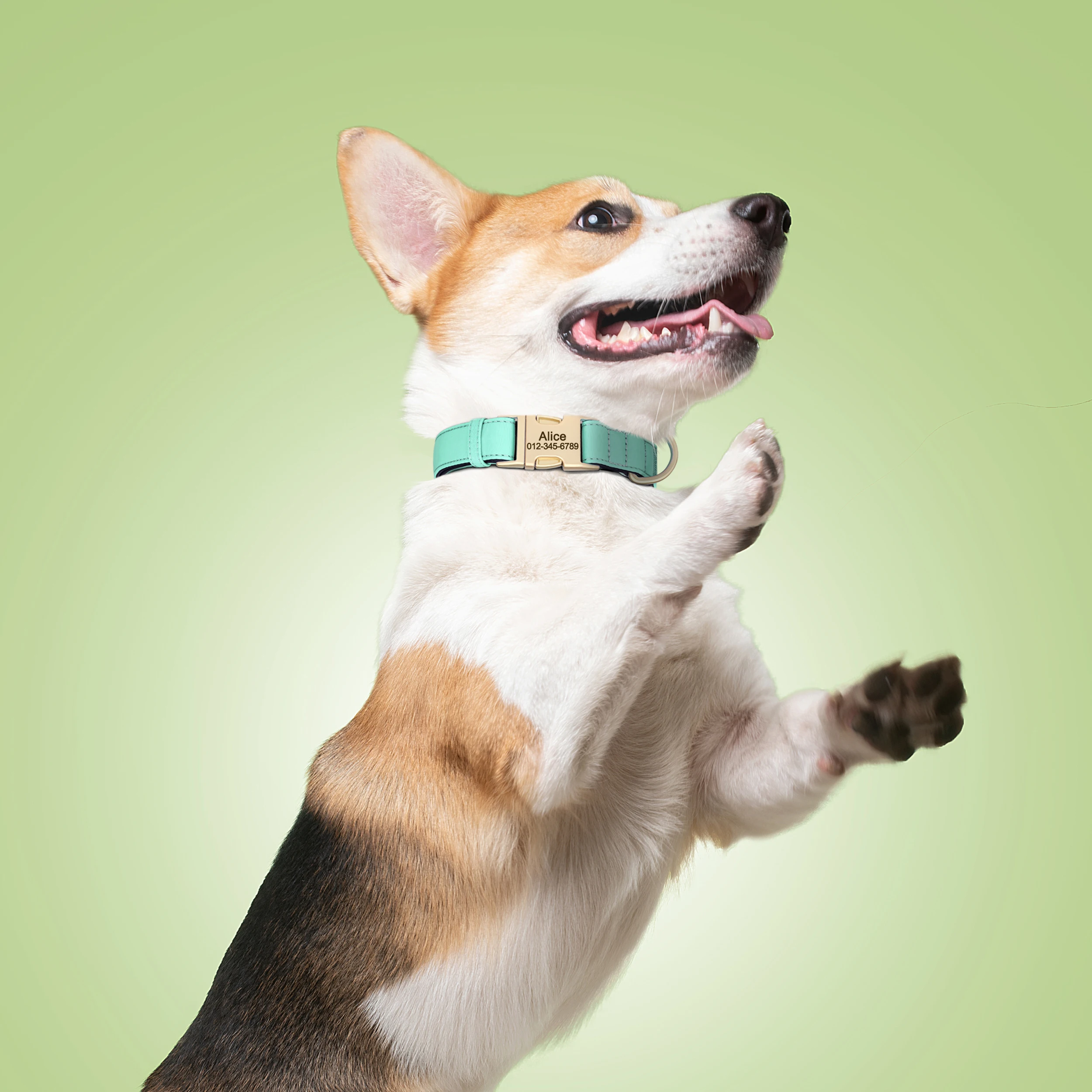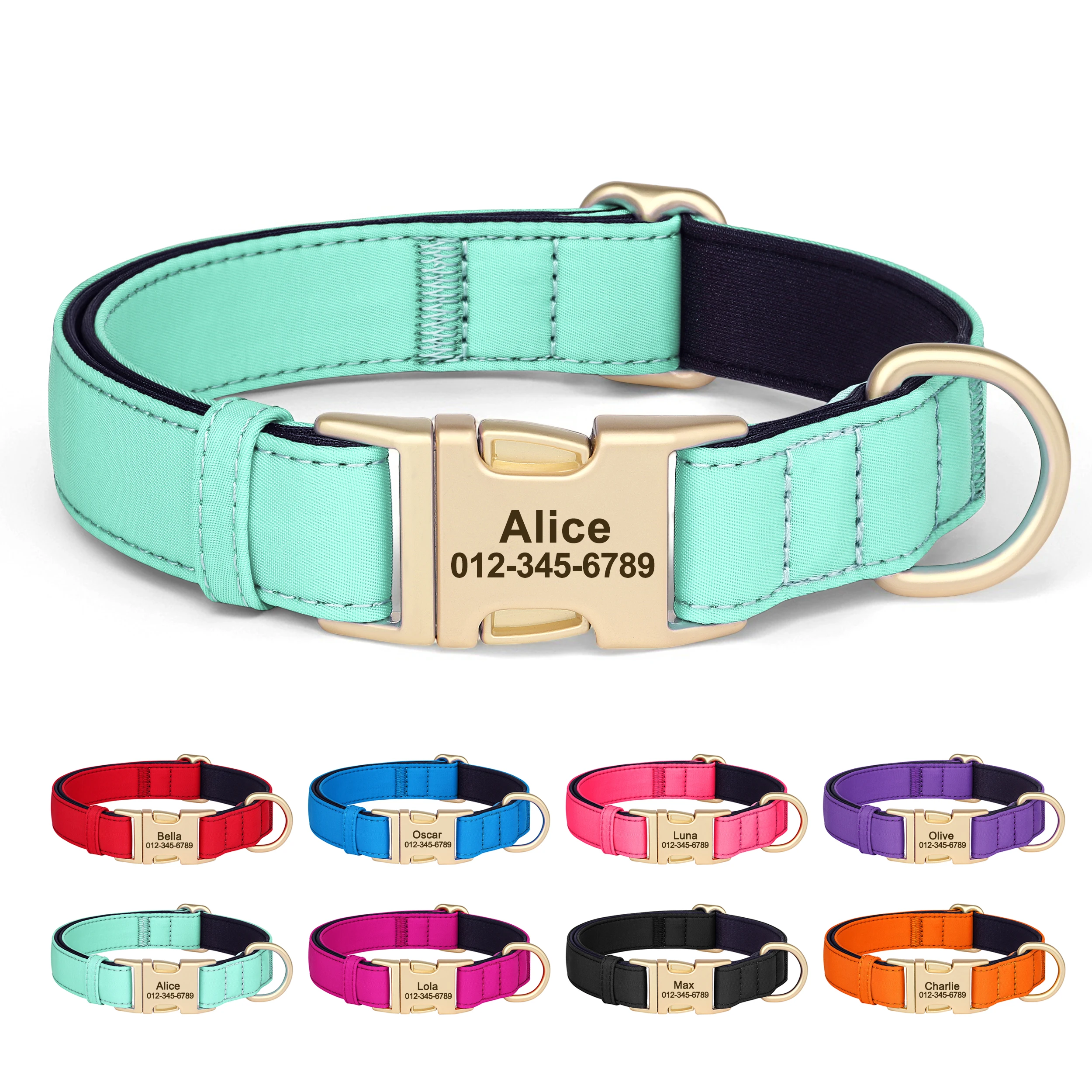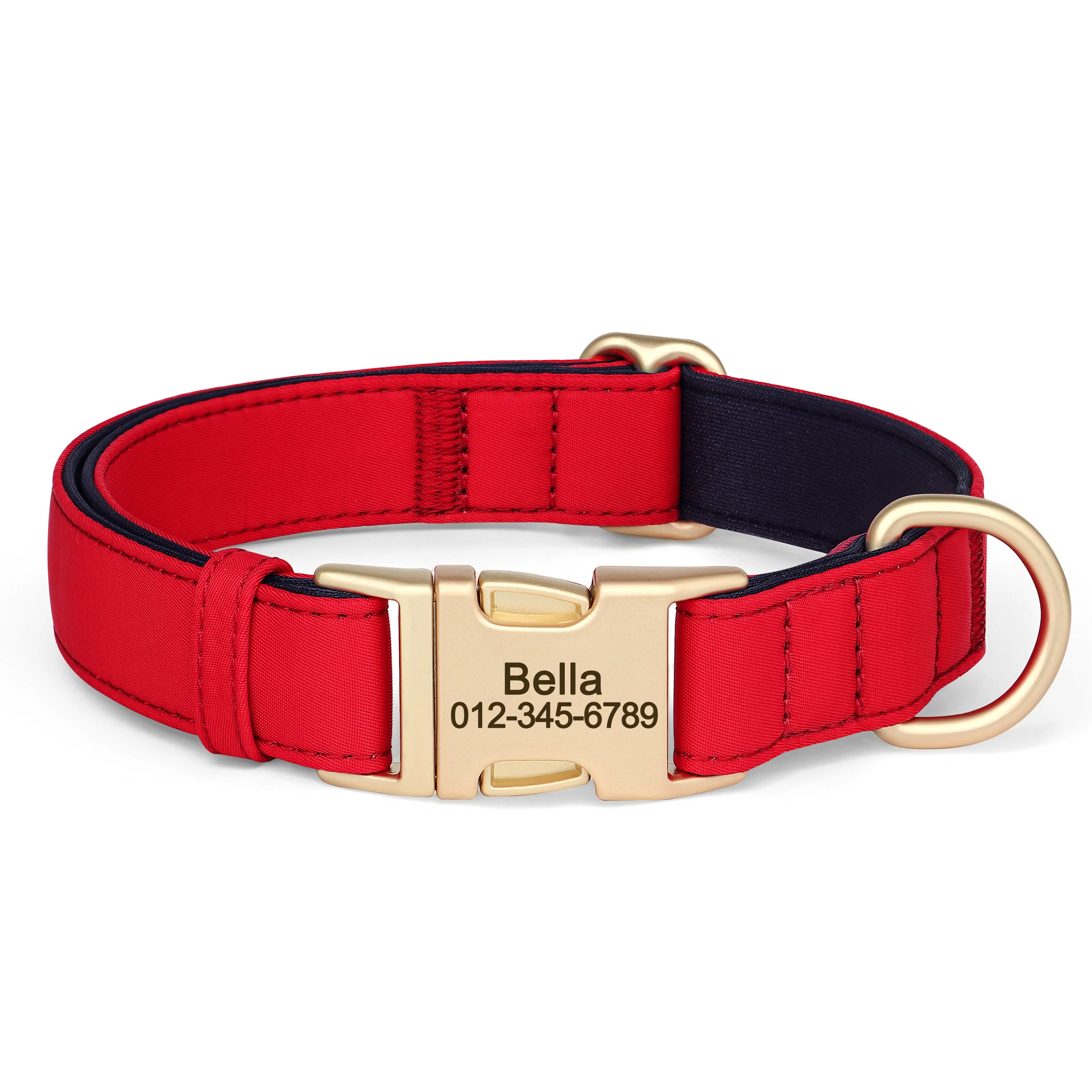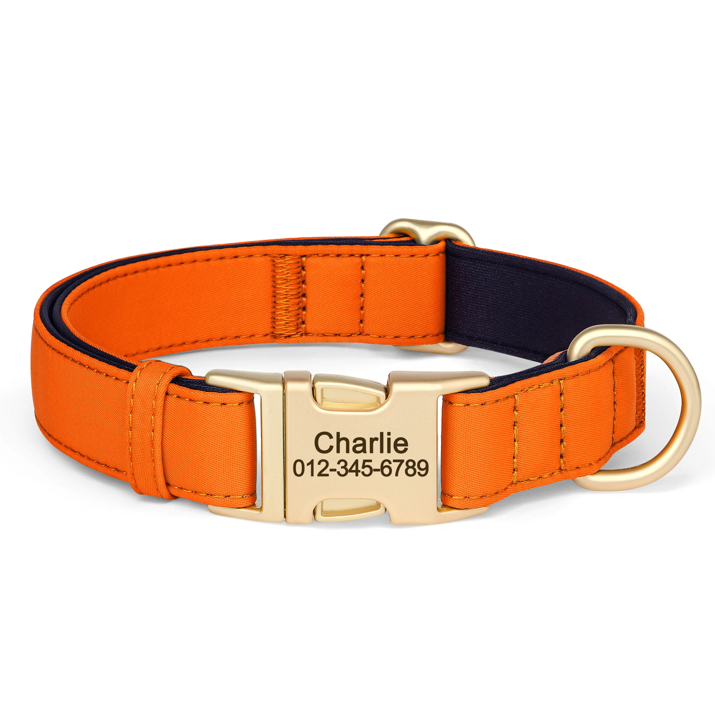 cool soft beautiful collar metal buckle logo dog name and mobile phone internal side of the collar probably not sure about waterproof the collar is getting big in