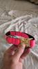 Daisy looks beautiful with her new necklace, she is a little big, but she will grow and fit her perfectly beautiful color and the engraving was perfect.
