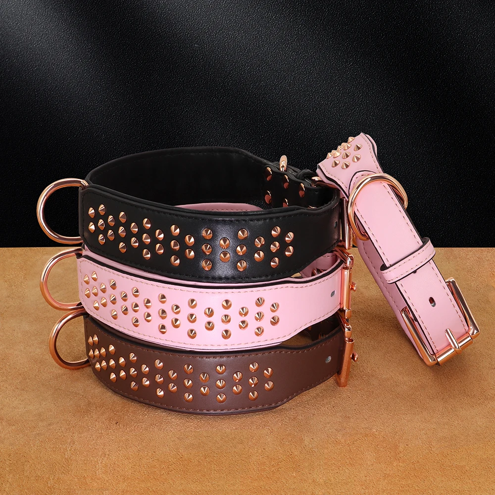 Adjustable PU Leather Dog Collar For Medium Large Dogs Accessories Durable Pet Necklace Collars Pitbull Bulldog Pet Supplies