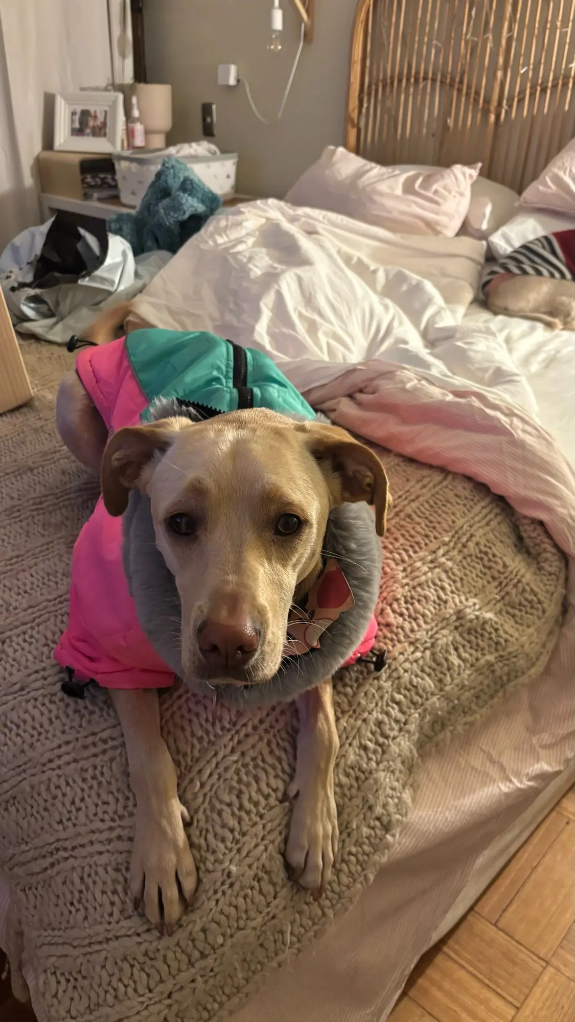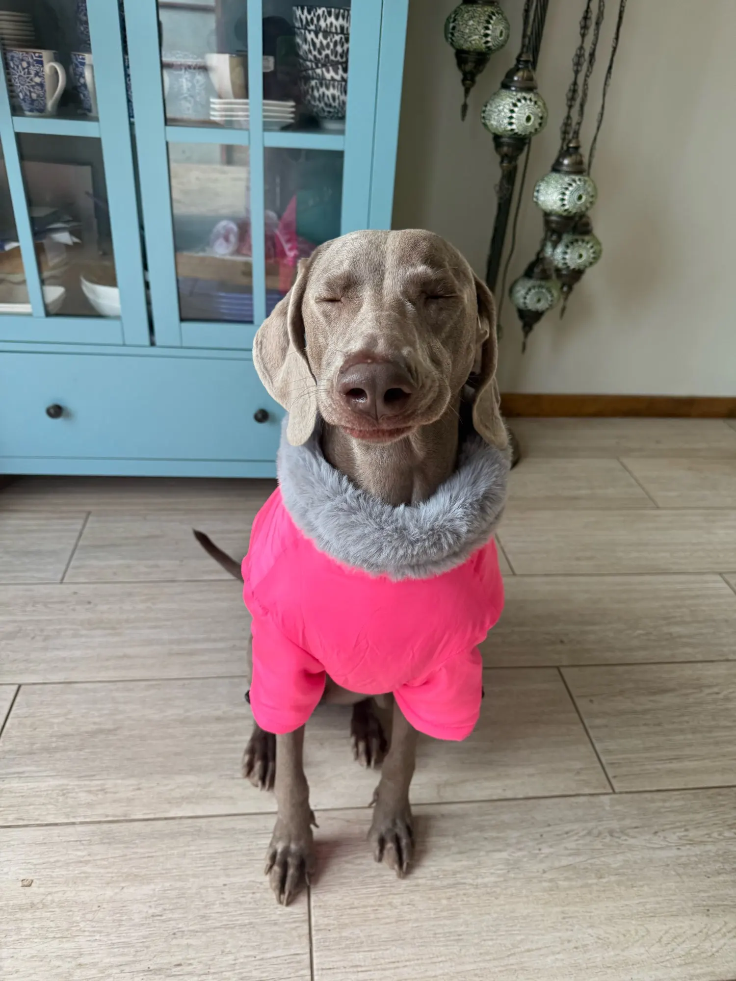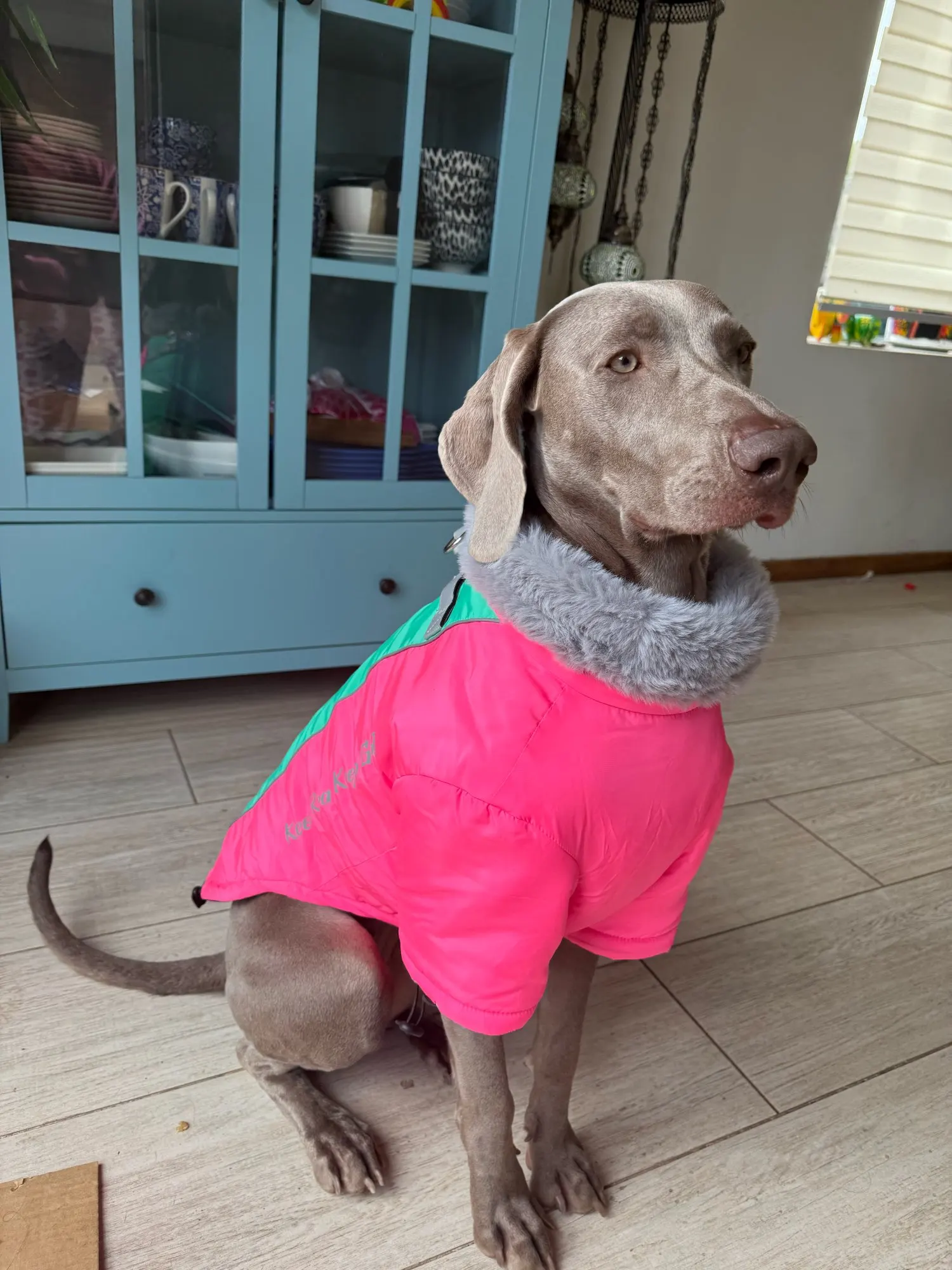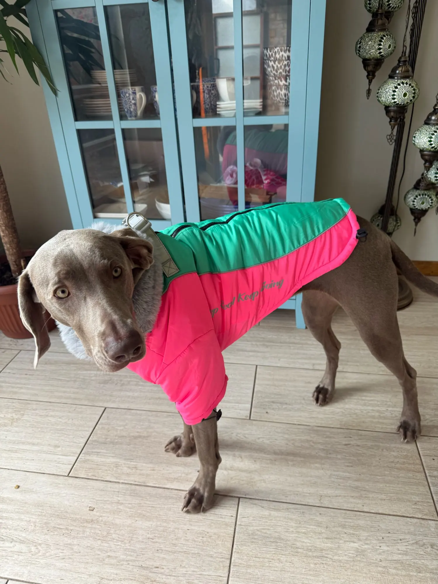 It's beautiful, I love it. It's like 80's snow clothes dog version