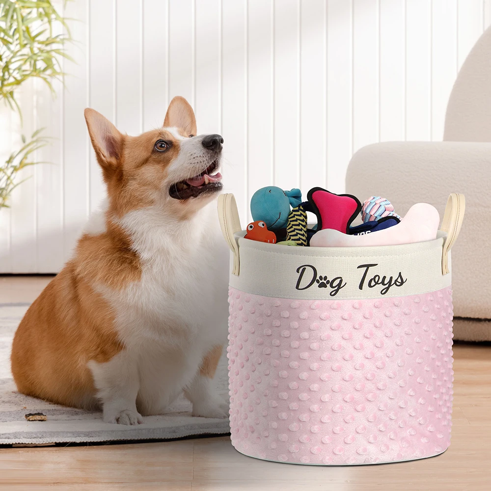 • Collapsible Dog Toy Basket Big Capacity Pet Toy Box Storage Bin With Handles Organizer Storage Basket for Pet Toys Accessories