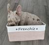 Well received. The basket is of beautiful quality. It's a shame that my dog's name is not written. It seems I didn't put the name in the right place. I couldn't find the messaging system that was needed. We need to find a well-identified solution to send you the names.