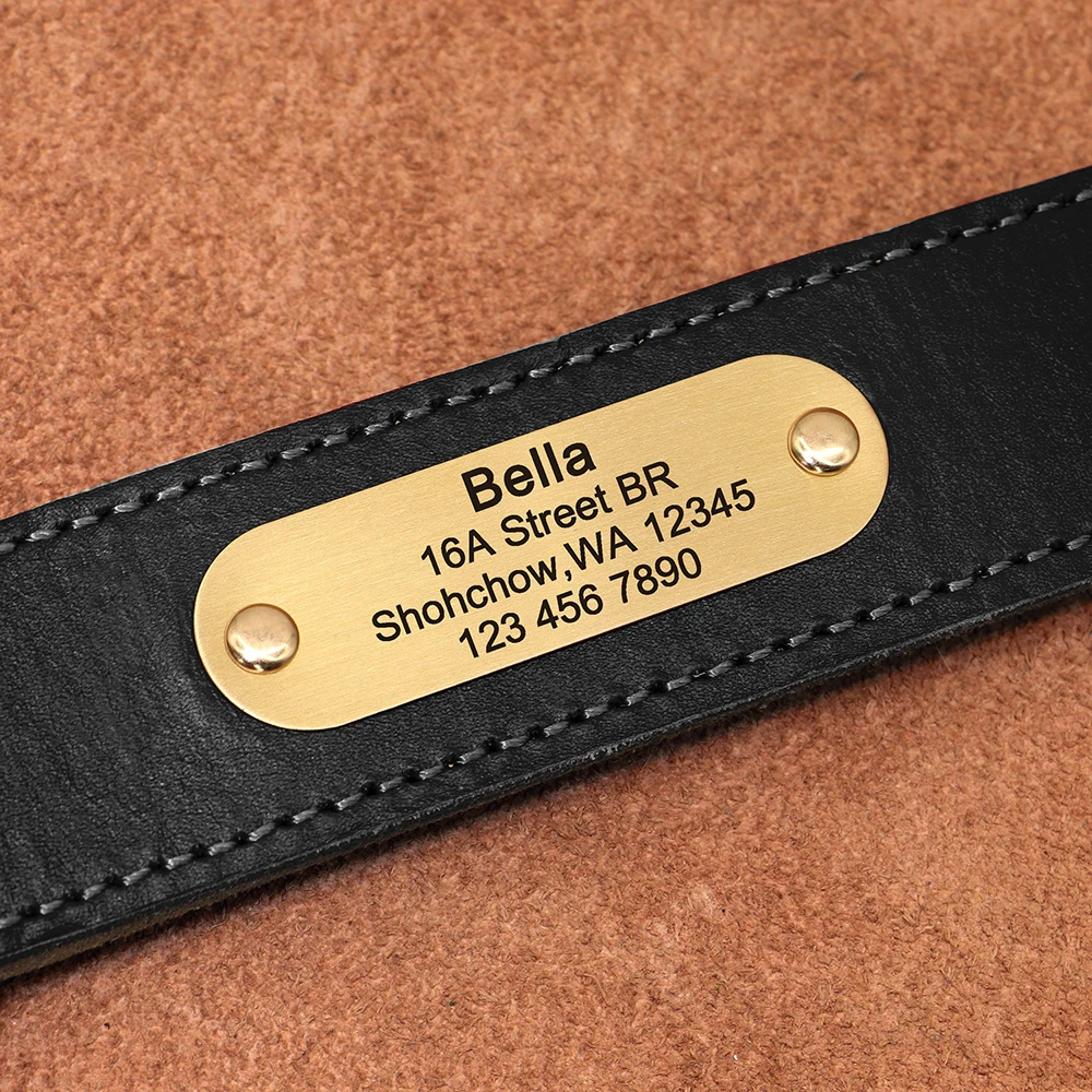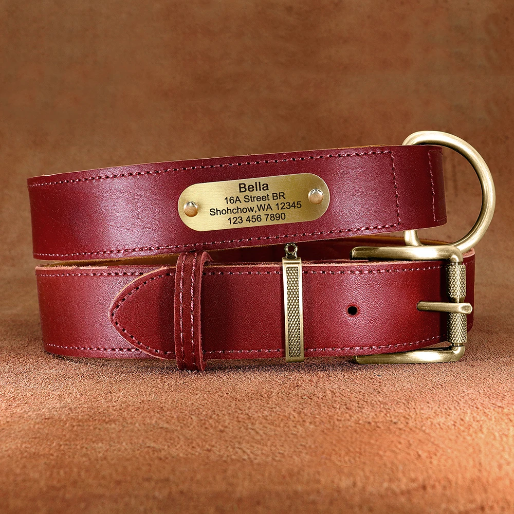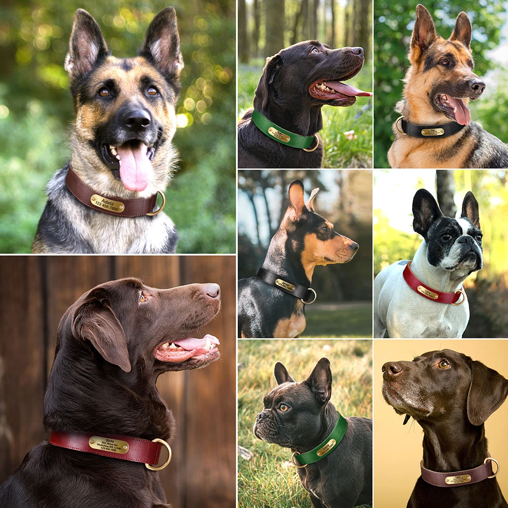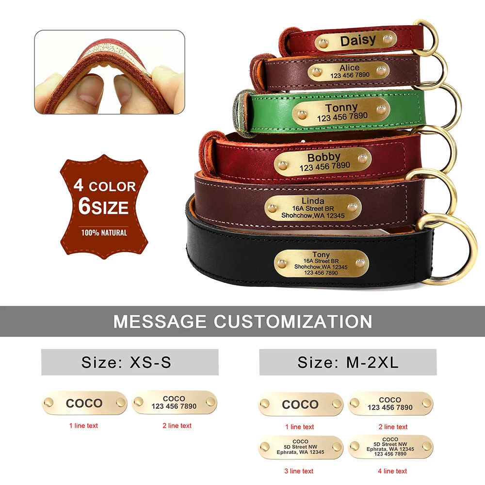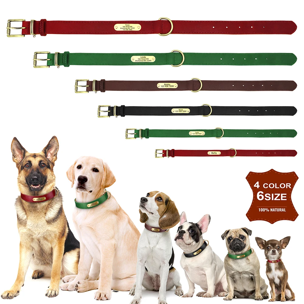 Your Pet Dog Customized Dog Collar Real Leather Personalized Dogs Collars Engraved ID Tag Name Plate Adjustable for Small Medium Large Dogs