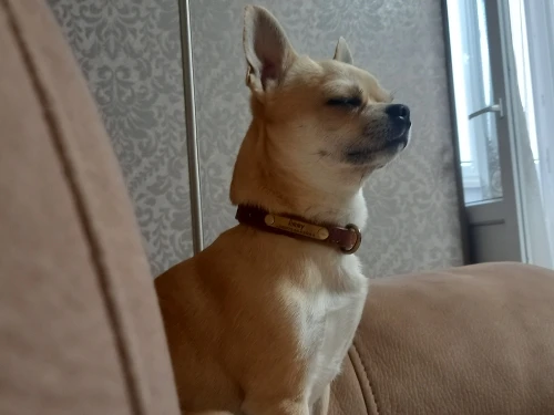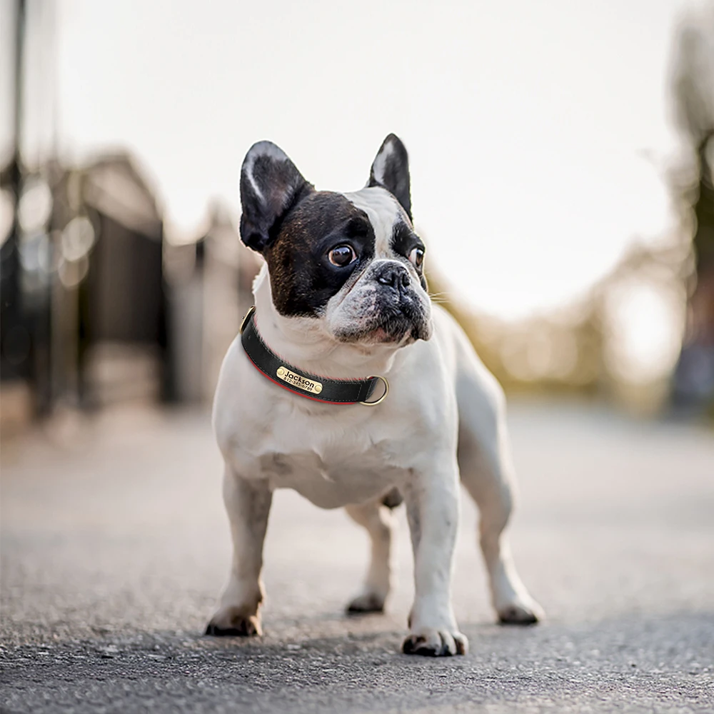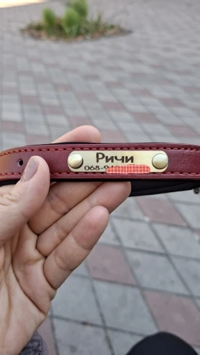 Super collars, we're already on our third one considering the dog's height. High-quality engraving includes the dog's name and two phone numbers. Everyone is asking where we got it from.