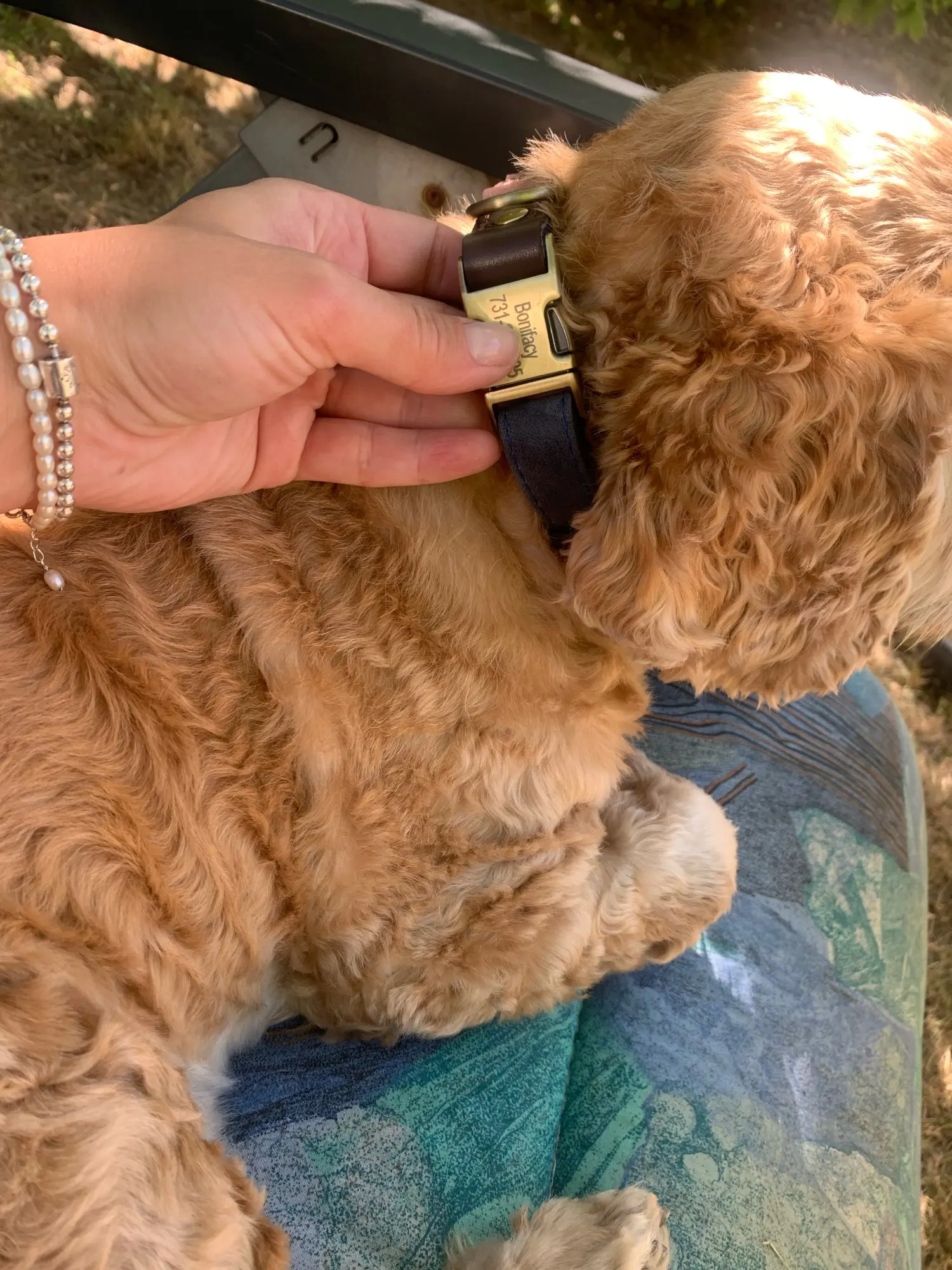 The collar is beautiful with good quality and perfect finishes, the engraving is great, it's super comfortable, both my dog and I are very happy, fast shipping, very satisfied with the purchase.