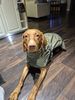 Great rain coat. However, it is just too small / short for my dog. Stitching looks great, quality material, and seems well made.