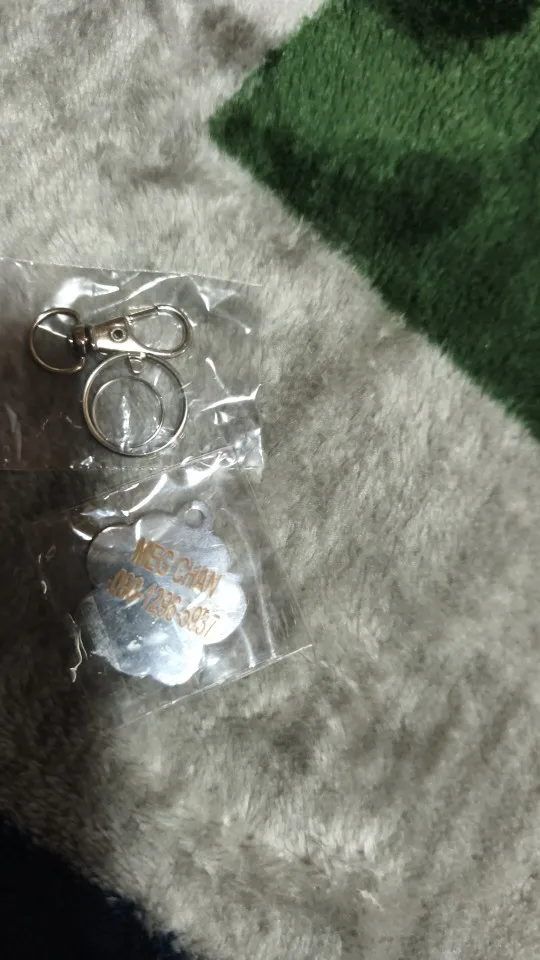 My beautiful cat id tag arrived safe & sound and i am thrilled to bits with the workmanship, which is accurate and beautifully written. My cat was stolen and i am one of the lucky ones who got her back. Even though my cat is microchip, the id tag gives that extra security. I throughly recommend getting 1 or more done to give that extra safe guard against people thieving your beloved pet. Thank you so much to the sellers for an excellent job and i recommend you and your store 100%.