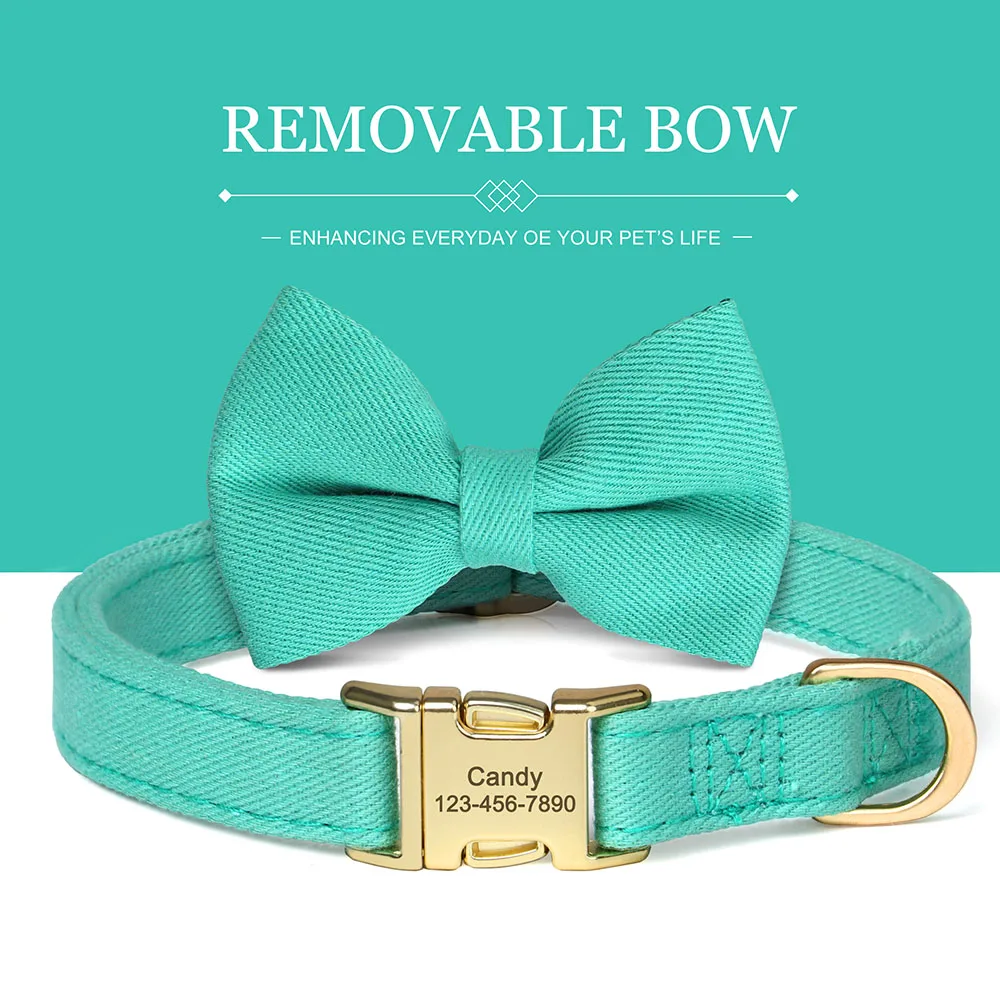 Personalized Dog Collar Cute Bowtie Dog Nylon Collars Free Engraving Pet Buckle Collar For Small Medium Dogs Bowknot Accessory