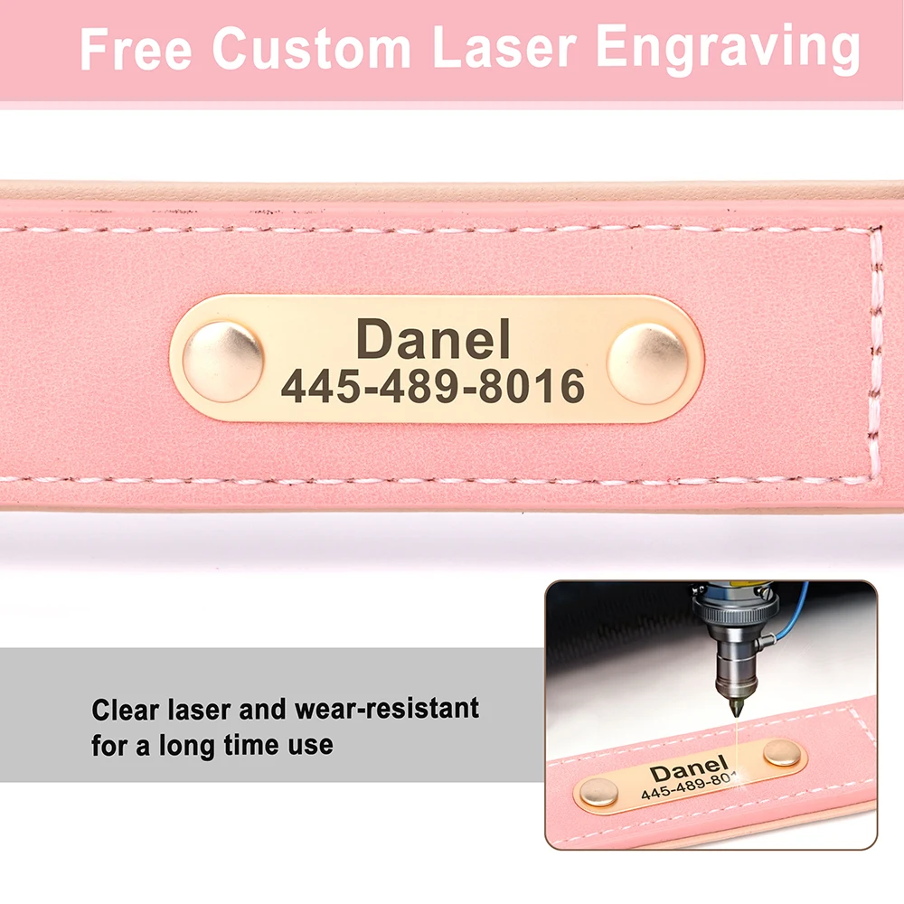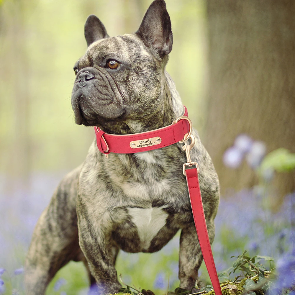 Personalized Dog Collar Leash PU Leather Dog Collars Pet Walking Lead Rope For Small, Medium, and Large Dogs Free Custom ID Nameplate