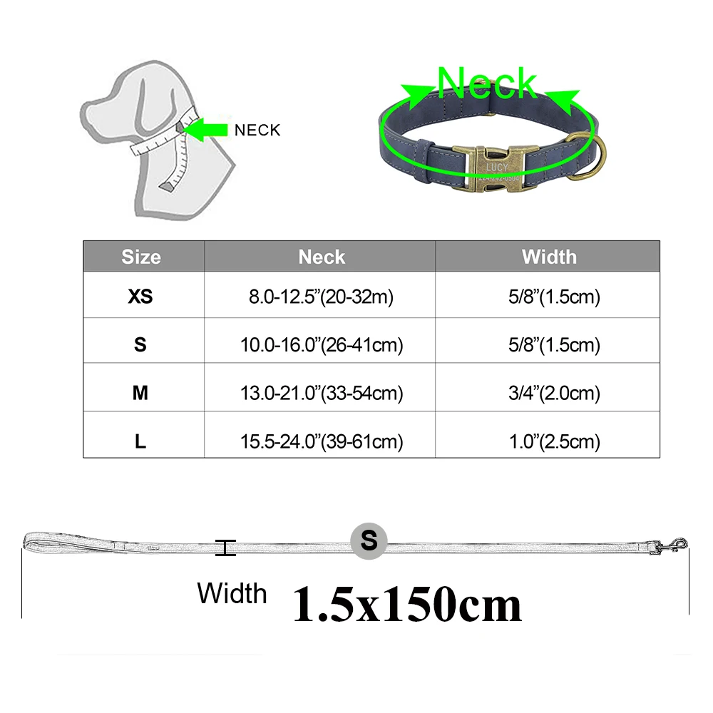 Your Pet Dog Personalized Dog Collar Leash Set Customized Dogs Tag Collar Lead With Metal Buckle Leather Padded for Small Medium Dogs Pitbull