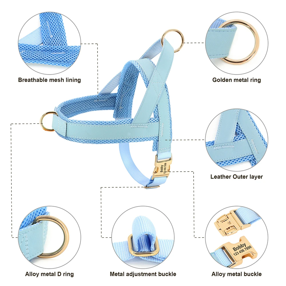 Name:Your Pet Dog Collar Harness Leash Set Pet Mesh Vest Harness Customized ID Pet Leads For Small, Medium, and Large Dogs