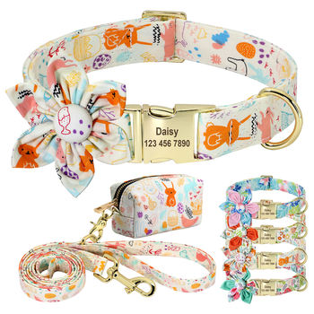 Your Pet Dog Personalized Dog Collar Leash Poop Bag Set Nylon Custom ID Name Tag Collars With Floral Accessories For Small Medium Large Dogs