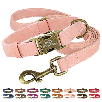 Your Pet Dog Personalized Dog Collar Leash Set Customized Dogs Tag Collar Lead With Metal Buckle Leather Padded for Small Medium Dogs Pitbull