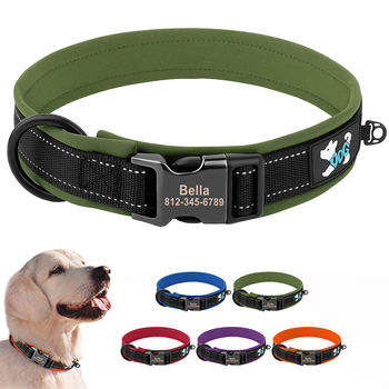 Your Pet Dog Reflective Dog Collar Personalized ID Buckle Collars Free Engrave Soft Padded Dogs Collar Adjustable for Small Medium Large Dogs