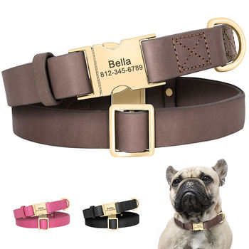 Your Pet Dog Personalized Dog Collar Free Engraved Dog Leather Collars Customized Pet Buckle Collar For Small Medium Large Dogs Bulldog Pug