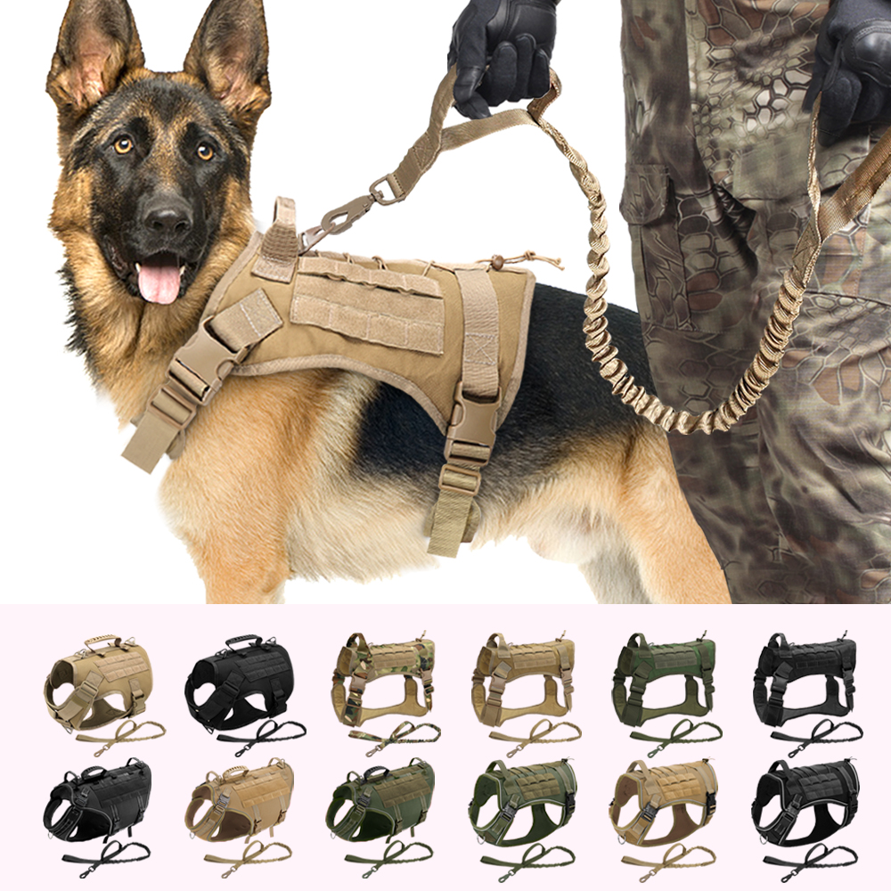 Tactical Military Vest Pet Outdoor Training Vest Dog Harness and Leash Set With Collar for Medium Large Dogs, German Shepherd