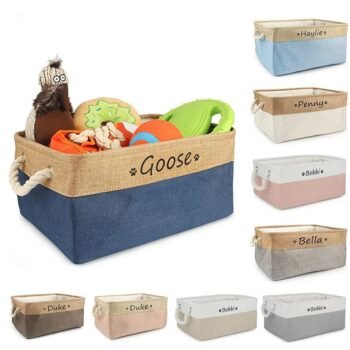 Your Pet Dog Personalized Dog Toy Basket Free Print Pet Storage Box DIY Custom Dog Name Toys Clothes Accessories Foldable Organize Storage