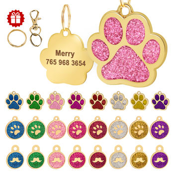 Your Pet Dog Personalized Dog Cat ID Tag Anti-lost Pet Name Tags Plates Freen Engraving Dogs Cats Nameplate Pendant Paw Round Shape