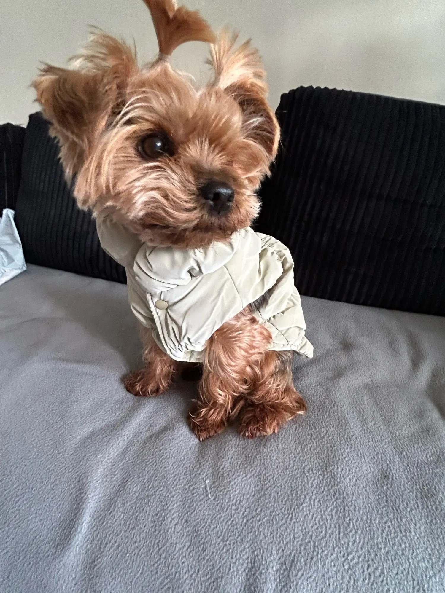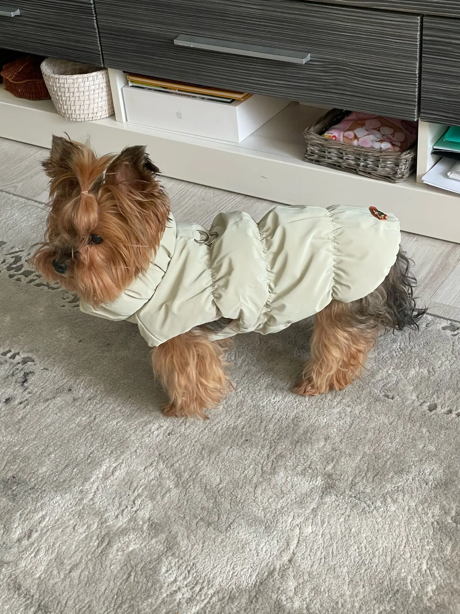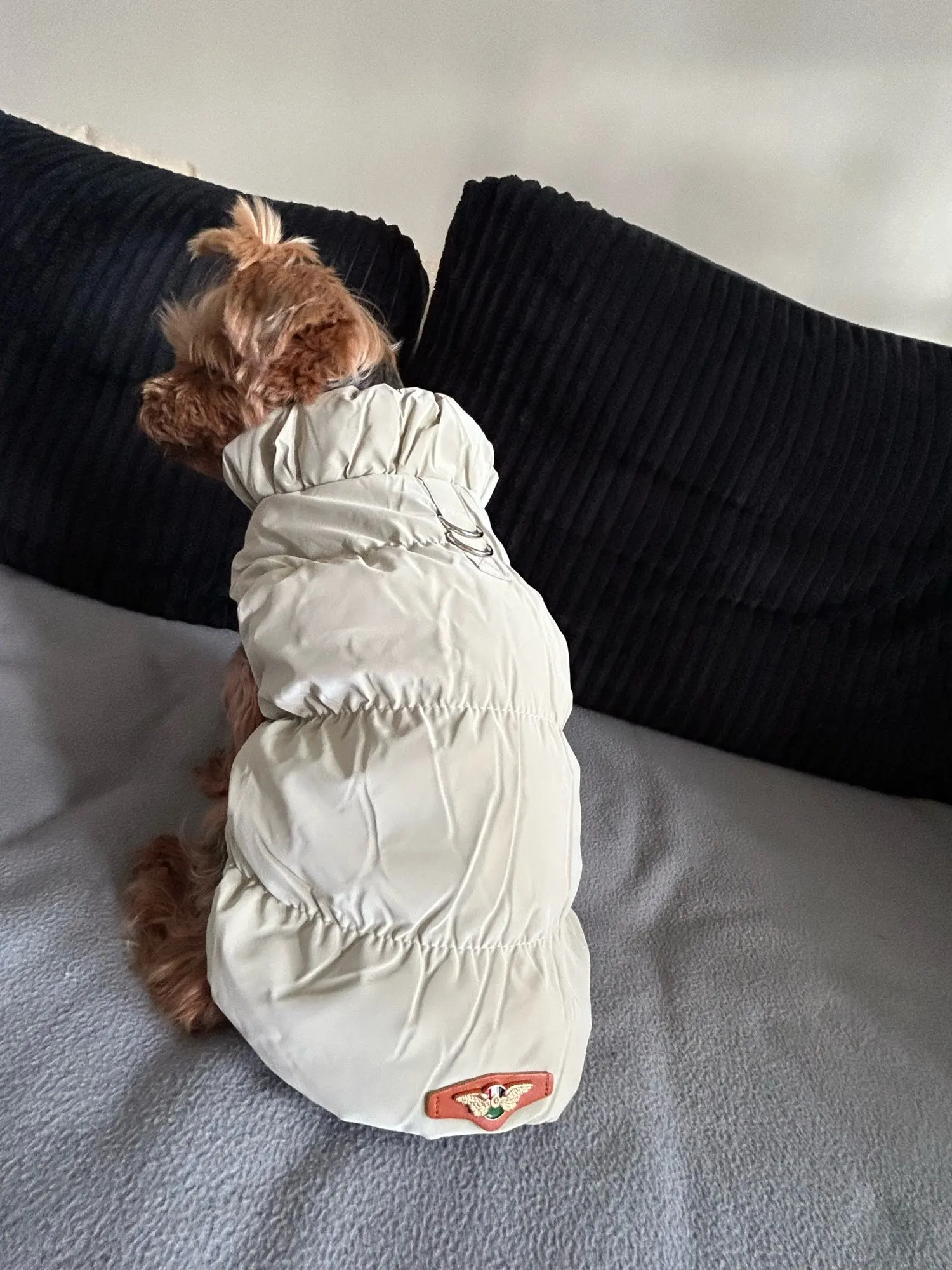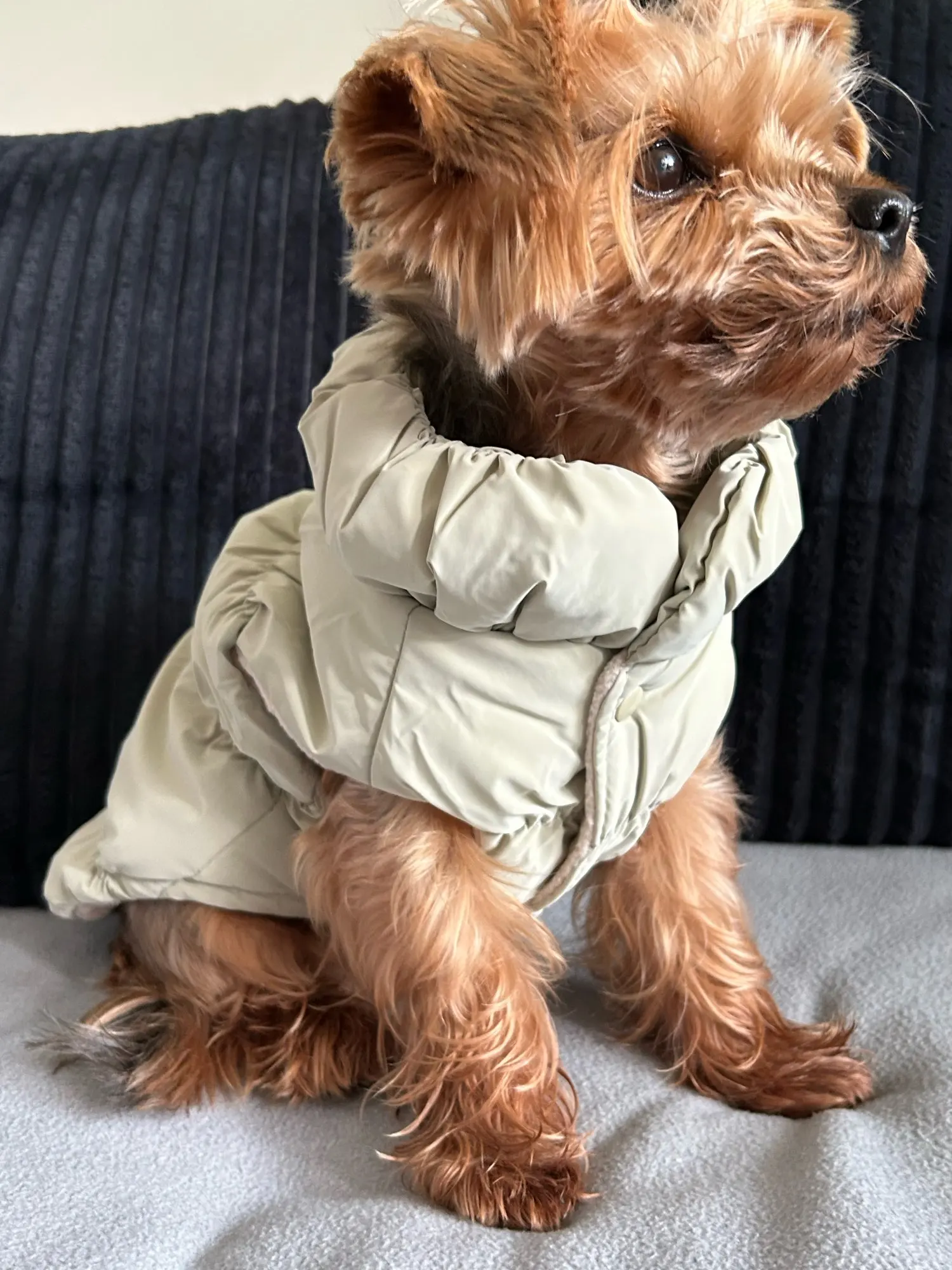 The color came not beige, but olive, but it's a very cool jacket for a dog, high-quality and beautiful!