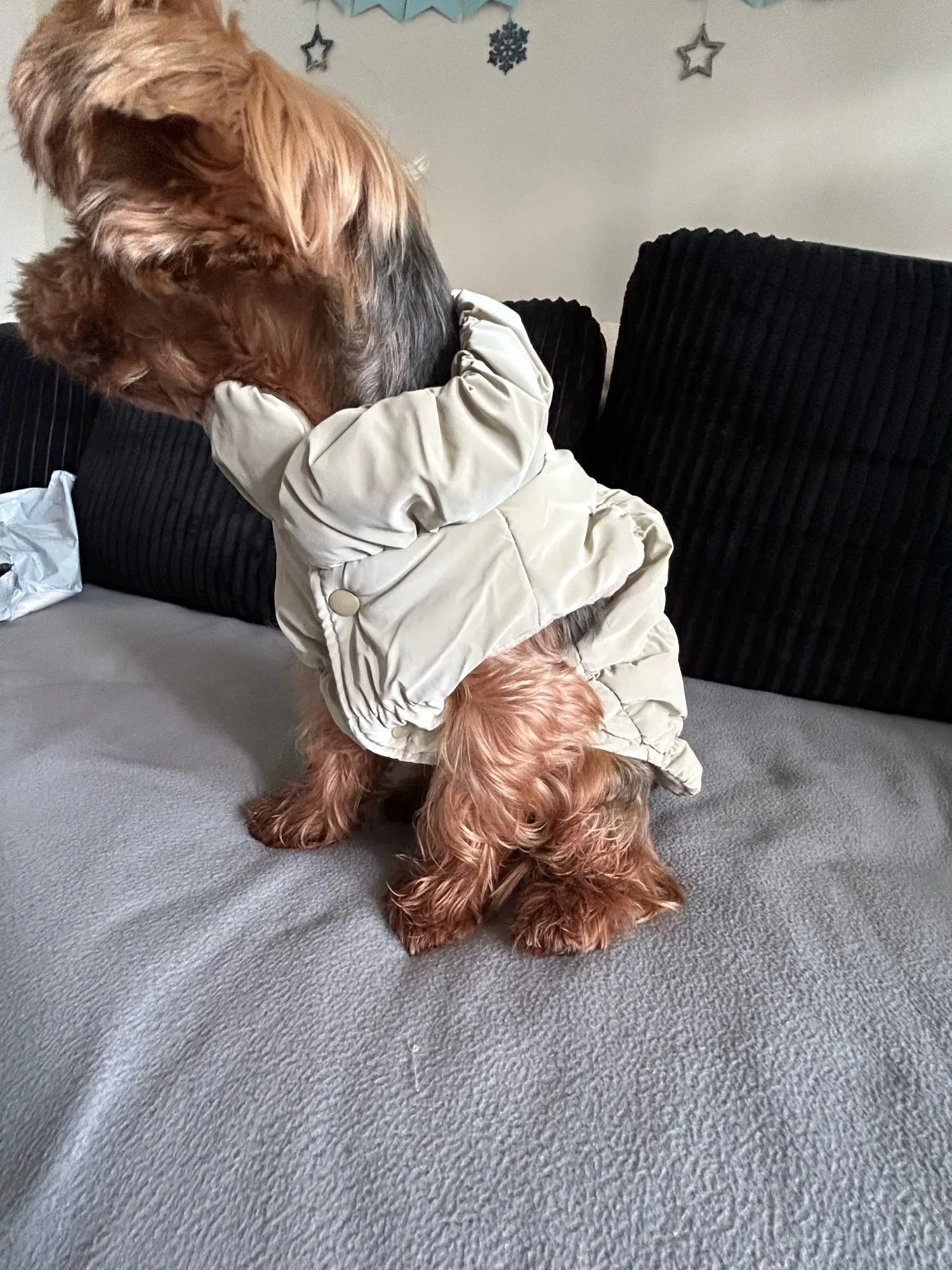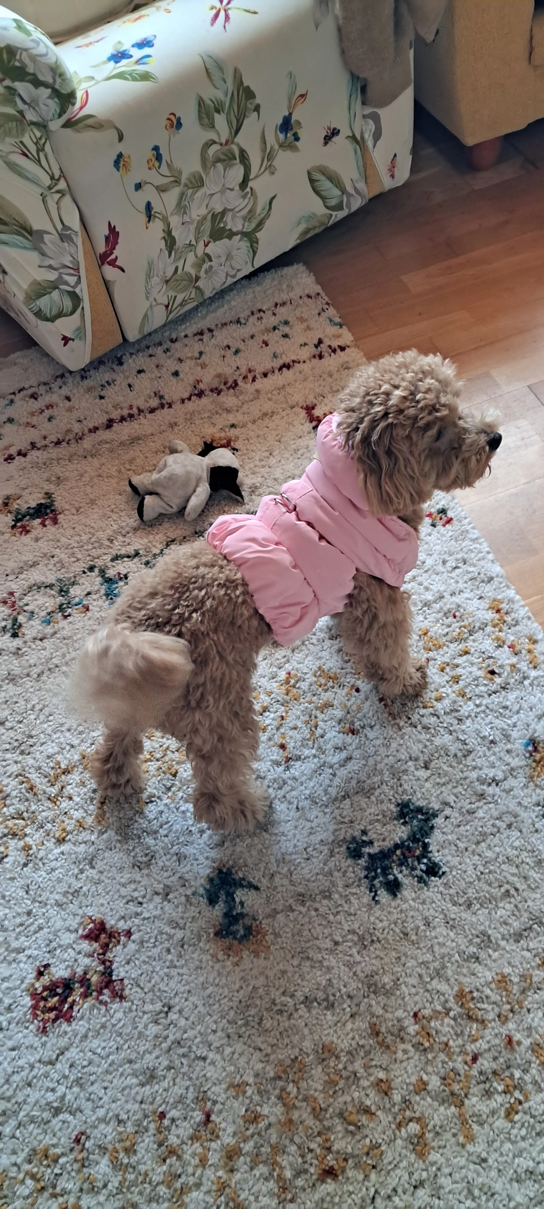 Order from 18.09.2025 delivered by DPD courier on 24.09.2025. Everything matches the description. I have no objections. The dog looks rough but it's a soft, warm outfit. Contact with the seller was not necessary. I recommend.