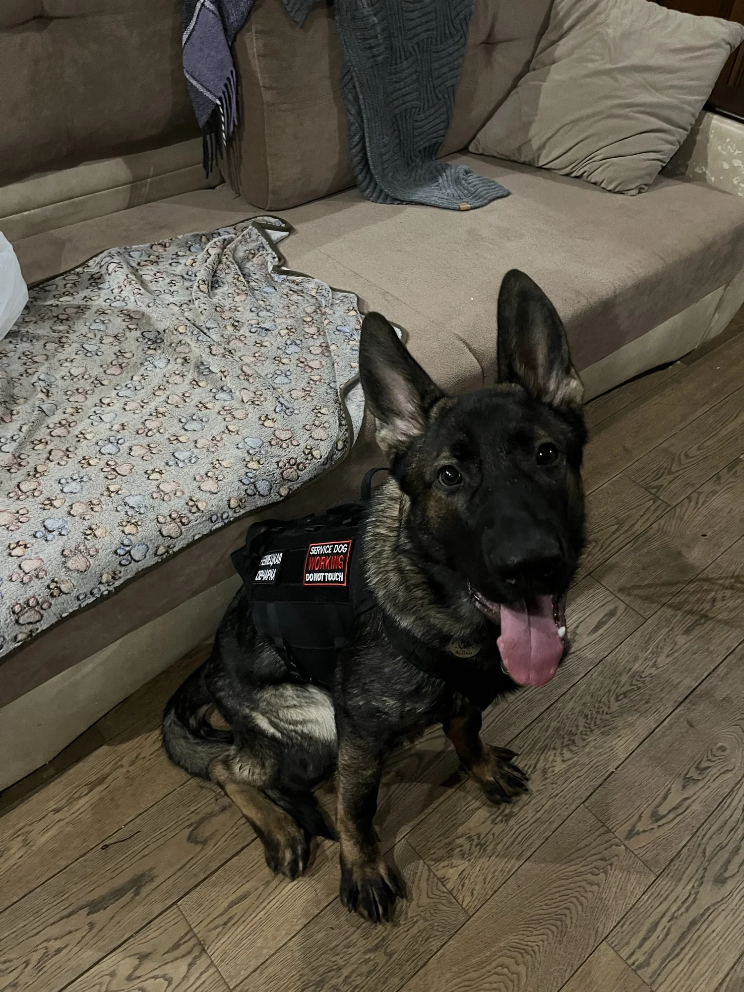 The harness is beautiful. Dense, long as I wanted, I did a minimum of 7 months for a German Shepherd puppy and came up with an ankle. The dog is comfortable. You can stick a lot of chevrons. Recommend!