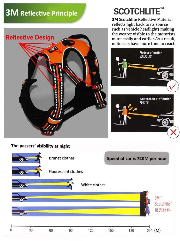 1. Nylon webbing with 3M Scotchlite reflective material ensures great visibility at night.