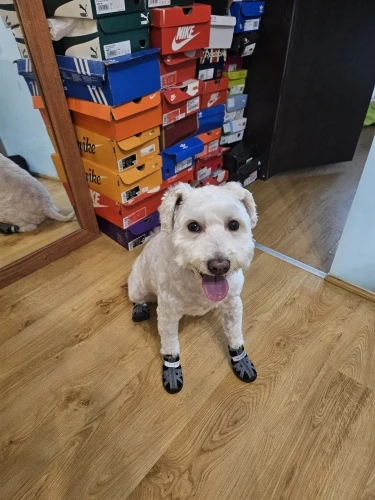 The best offer on Aliexpress for today. I tried many different shoes from other manufacturers and sellers. These are the best! Long clasps securely fix the boot on the paw. The most comfortable foot shape for my little dog. He had a double ankle fracture. That's why he "drags" his leg. Paw shuffles. Without shoes, the pads on the paw rub off and bleed. Therefore, the boots are very helpful. Plus, we also put a bandage on the paw to strengthen it and avoid another fracture (God forbid). I recommend these shoes and the seller to everyone. 👍 👍 👍 This is not the first time I've bought from him.