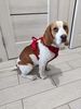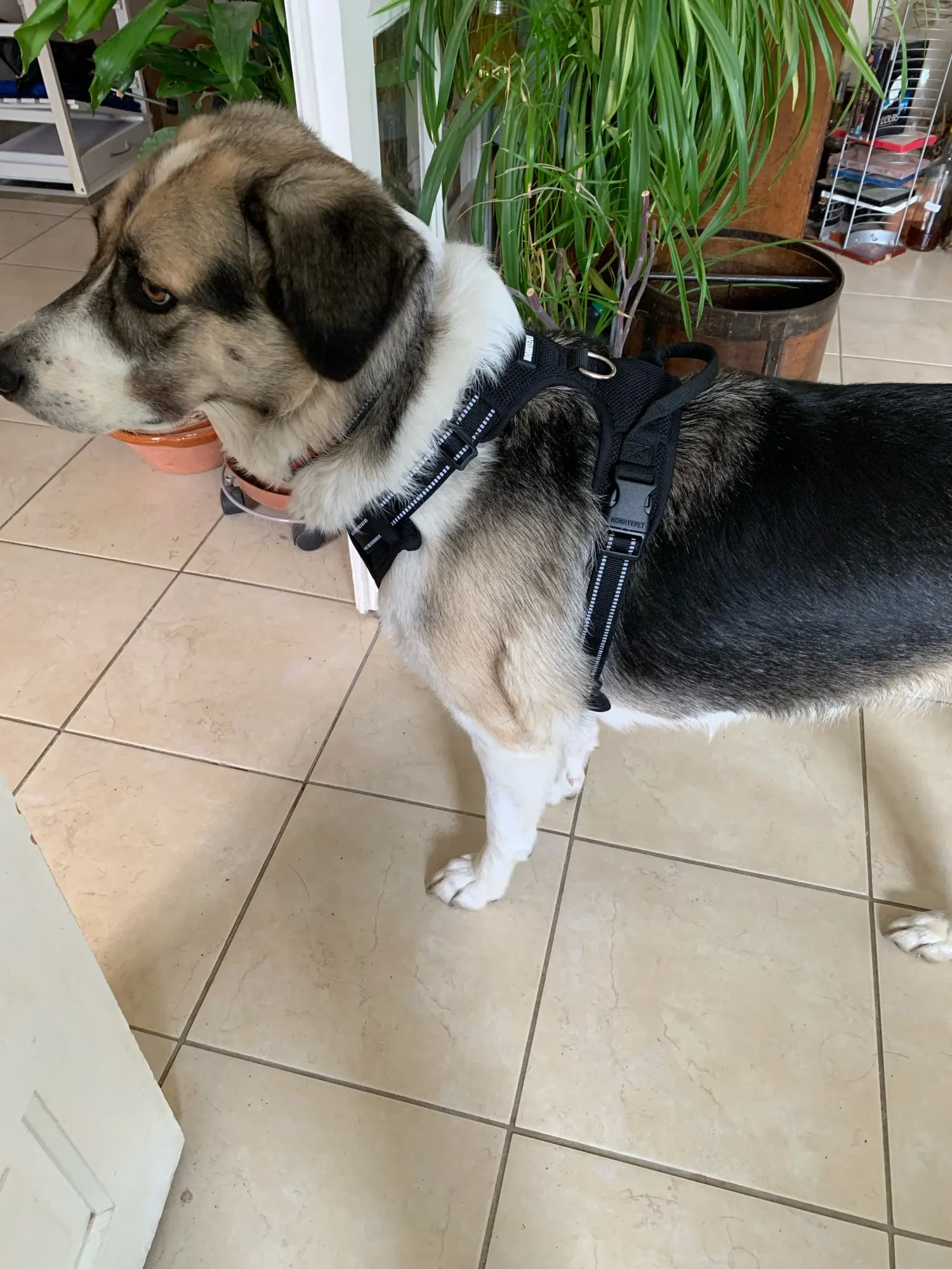 I am delighted with my purchase of the harness that seems very sturdy. Here are some photos so you can understand. I took the largest size for my 35 kg dog. It has been tested and fits perfectly. Thank you to the seller. Order received on time, product well packaged.