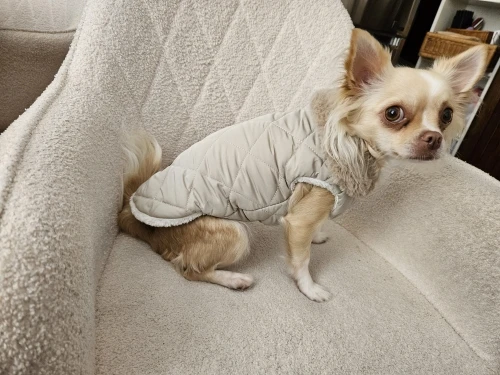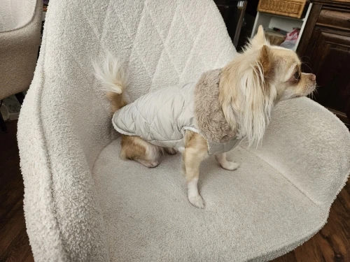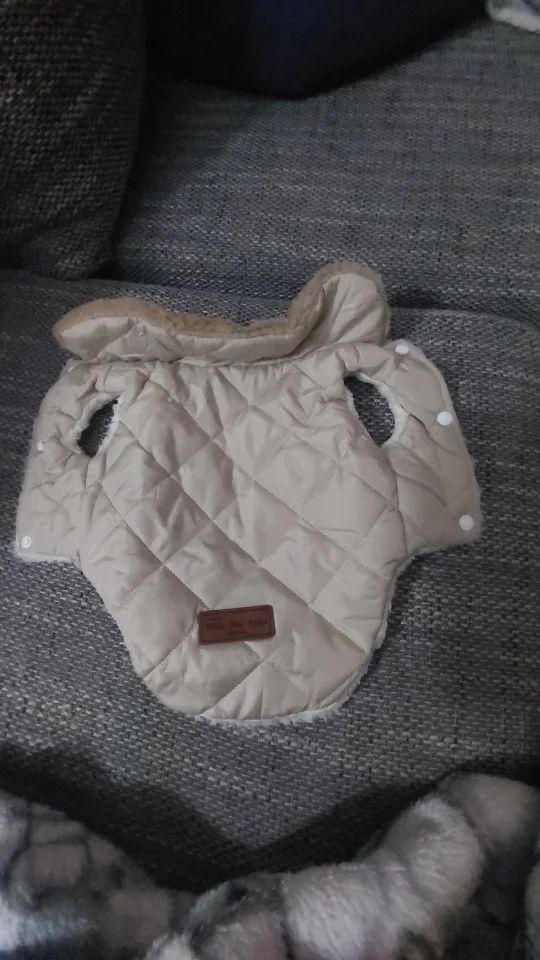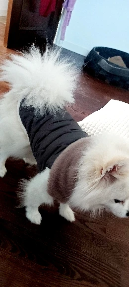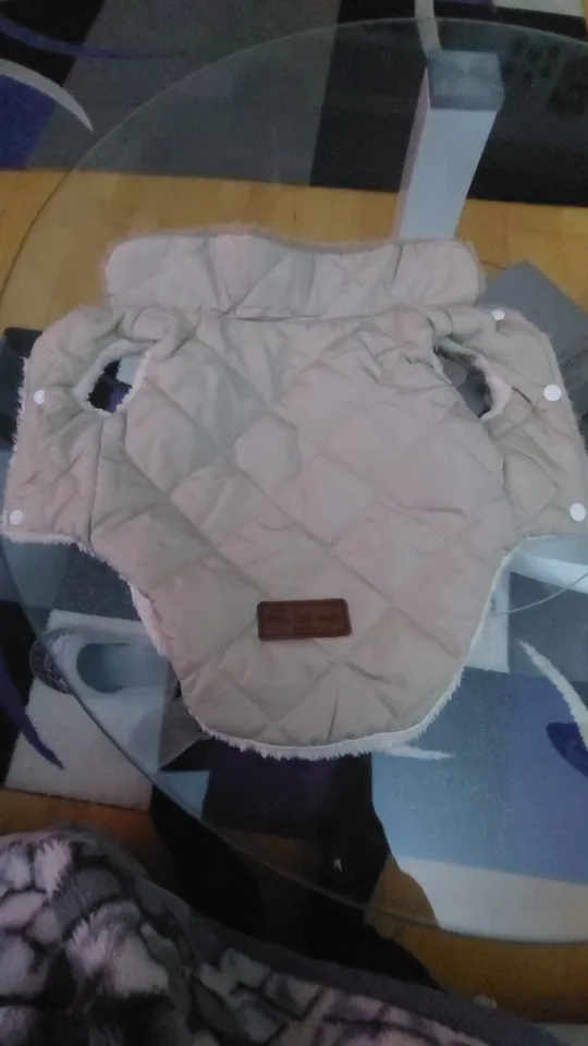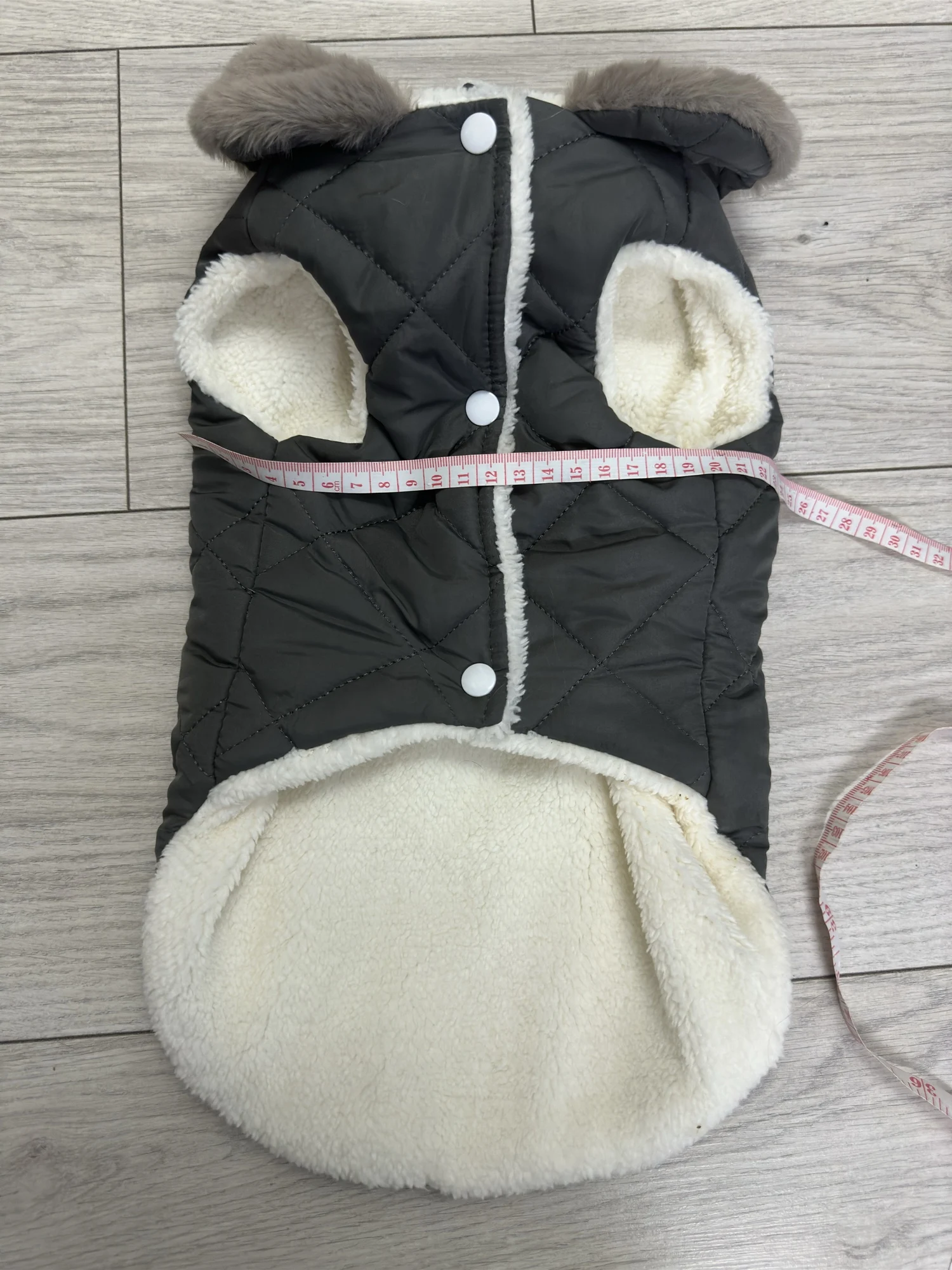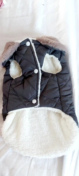 It's cool, the quality is good. A Yorkie weighing 4200, a bust of 37 ordered a size XL. The vest buttoned on the buttons on the front of the chest came out 23 cm of the battle, inside even less, because there is fur. The dog was buttoned up and sat back to back. The vest itself turned out to the tail on the back. You need to take 2 sizes larger.