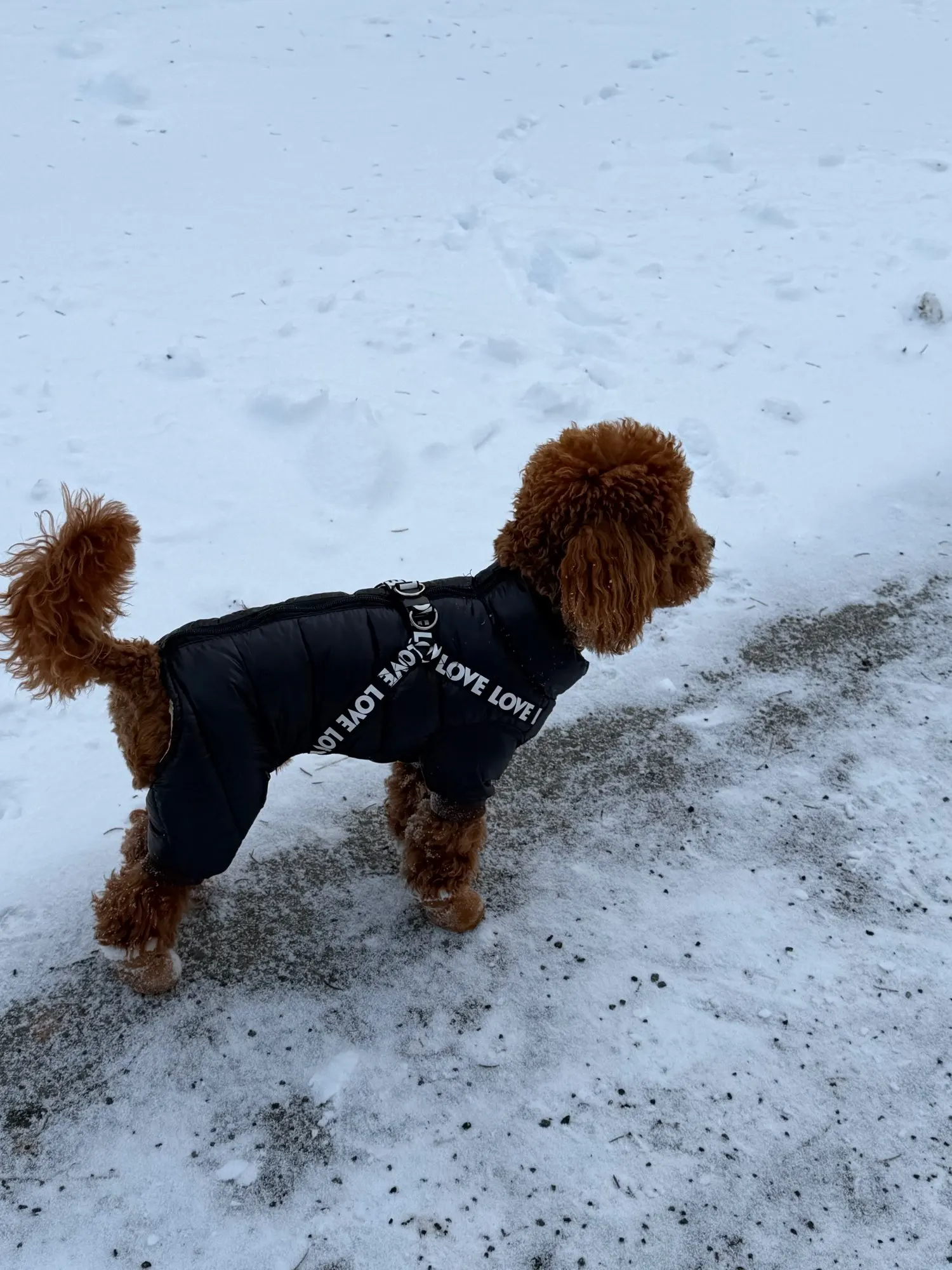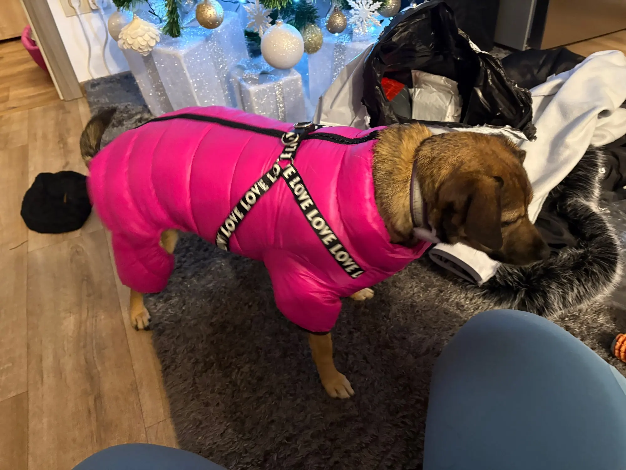 very good comfortable jumpsuit! There is synthetic padding inside, in my observations, it's fine down to -10°C. The only downside is that there is no elastic around the tail at the back, and it looks strange. The quality is good, already washed many times. It is very convenient to put on and take off. for Yorkie 4-4.8 kg (our weight fluctuations. 😅 Fits well, moderately loose, doesn't restrict movement. I recommend