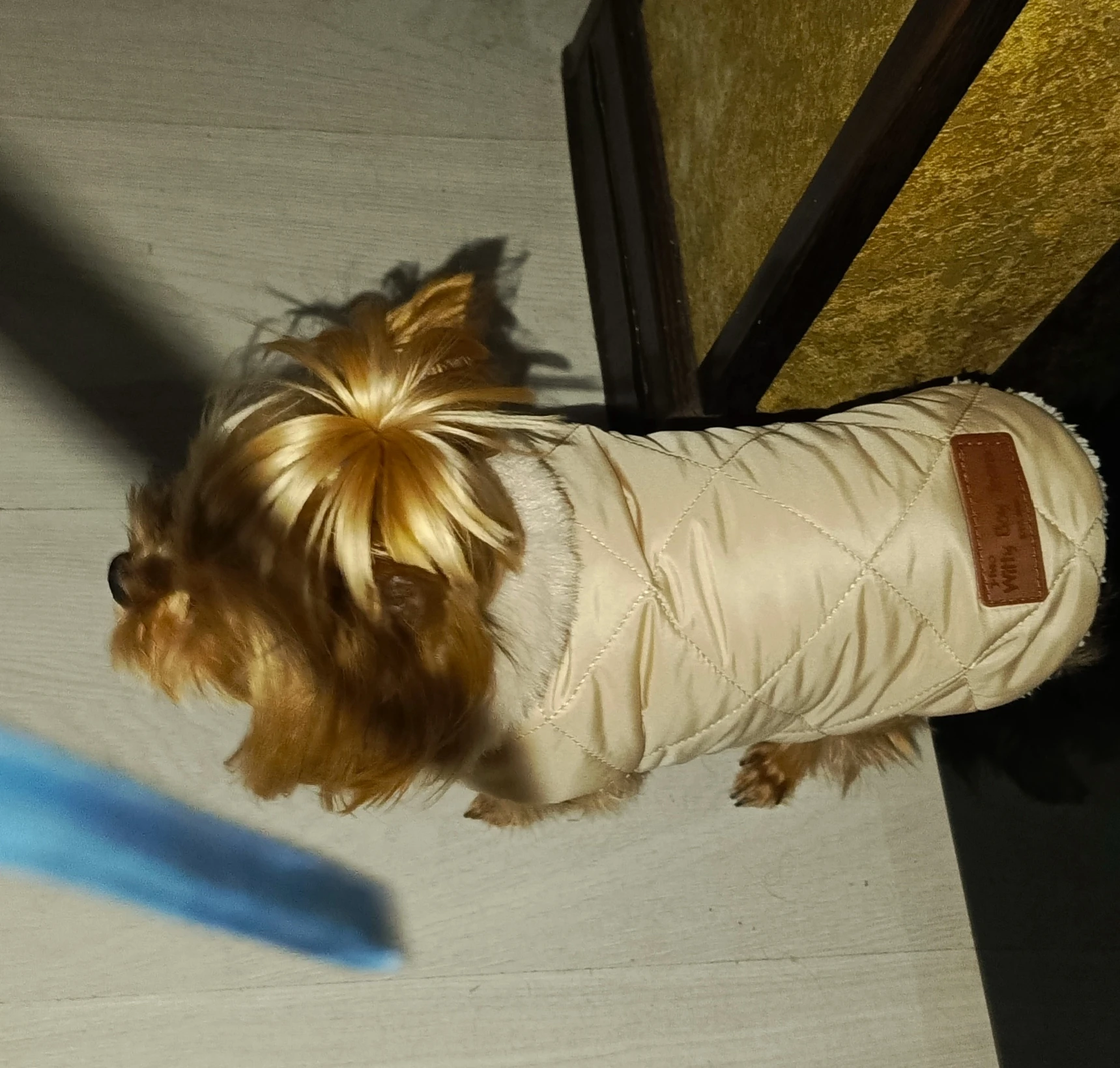 Excellent jacket. Bought for a 2 kg dog. Very high-quality material. Covers the back! I recommend.